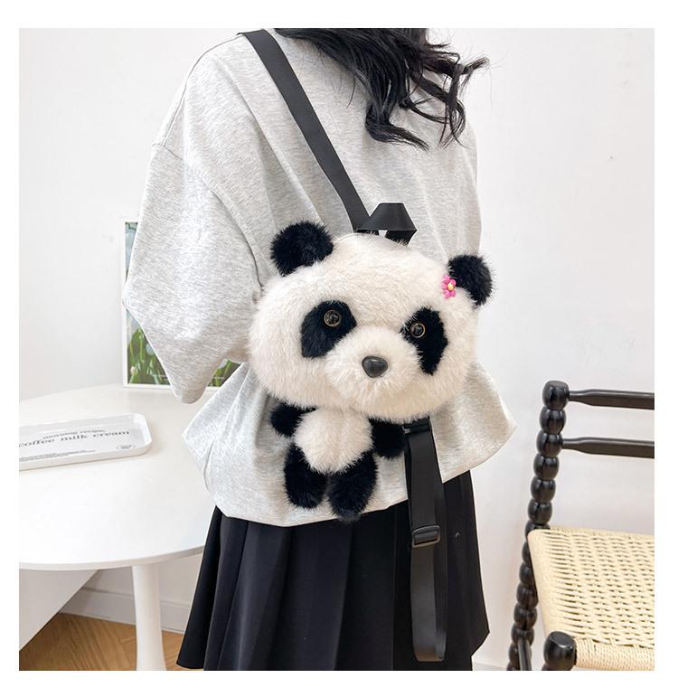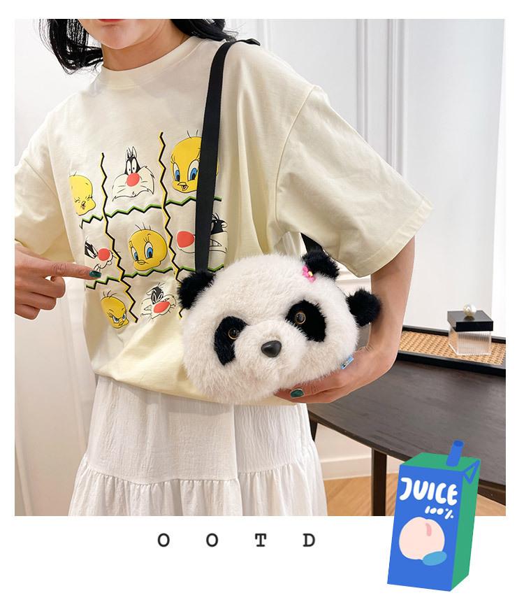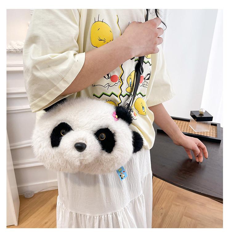 Bolsa de Felpa de Panda para Mujer 2025 Nueva Bolsa de Hombro Cruzada Mochila de Muñeco Muñeco Bolsa Linda de Dibujos Animados