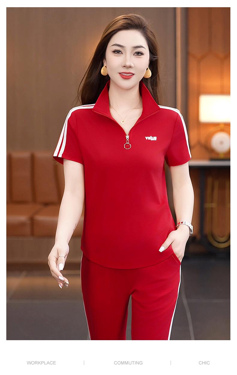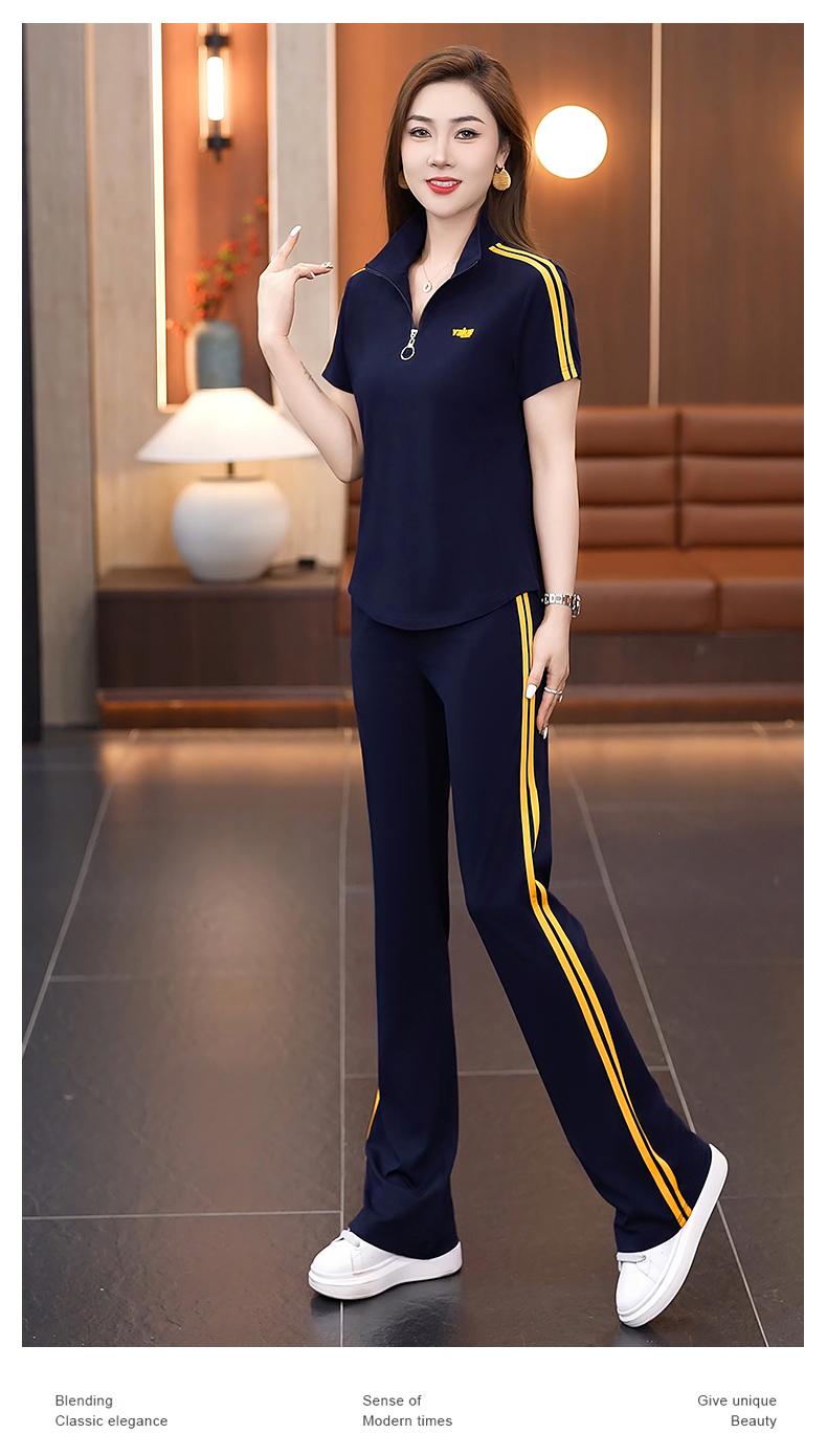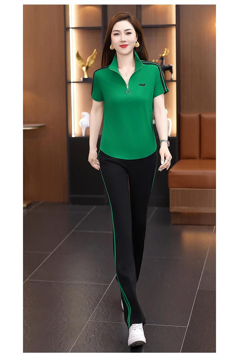 Traje Deportivo Casual para Mujer Verano 2025 Nuevo Estilo Reductor de Edad Adelgazante Seda de Hielo Manga Corta Pantalón Conjunto de Dos Piezas