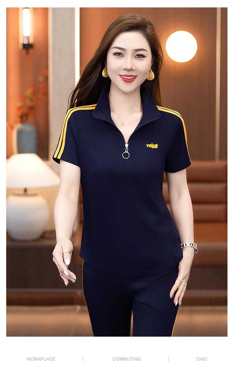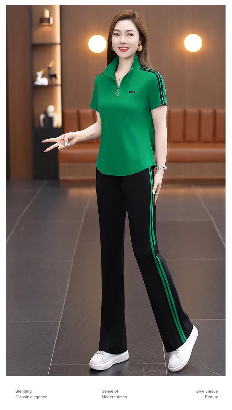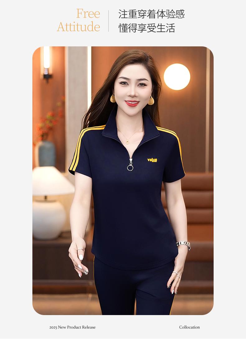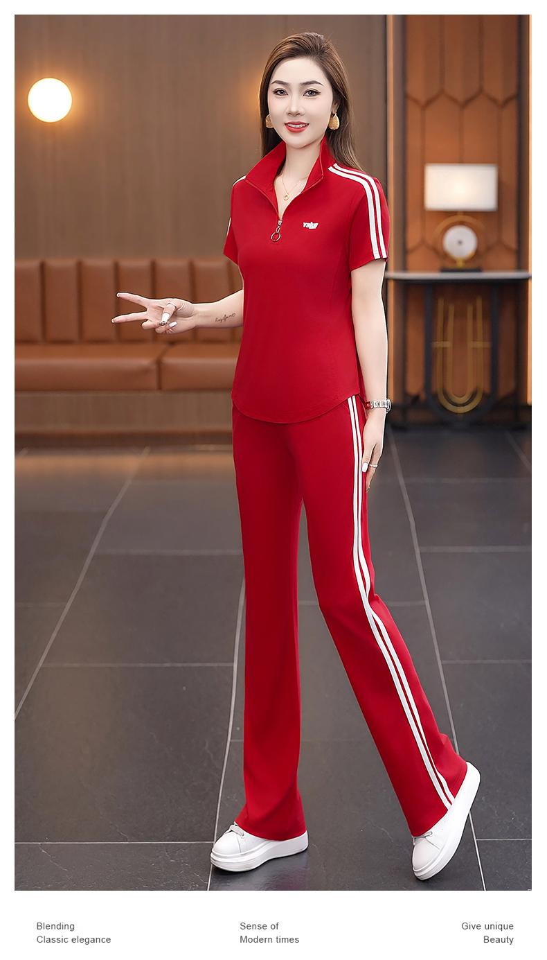 Traje Deportivo Casual para Mujer Verano 2025 Nuevo Estilo Reductor de Edad Adelgazante Seda de Hielo Manga Corta Pantalón Conjunto de Dos Piezas