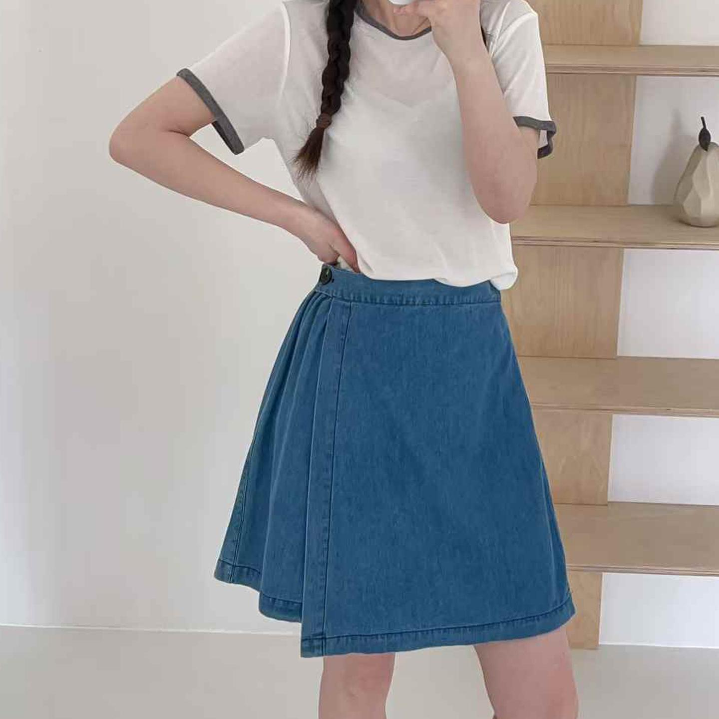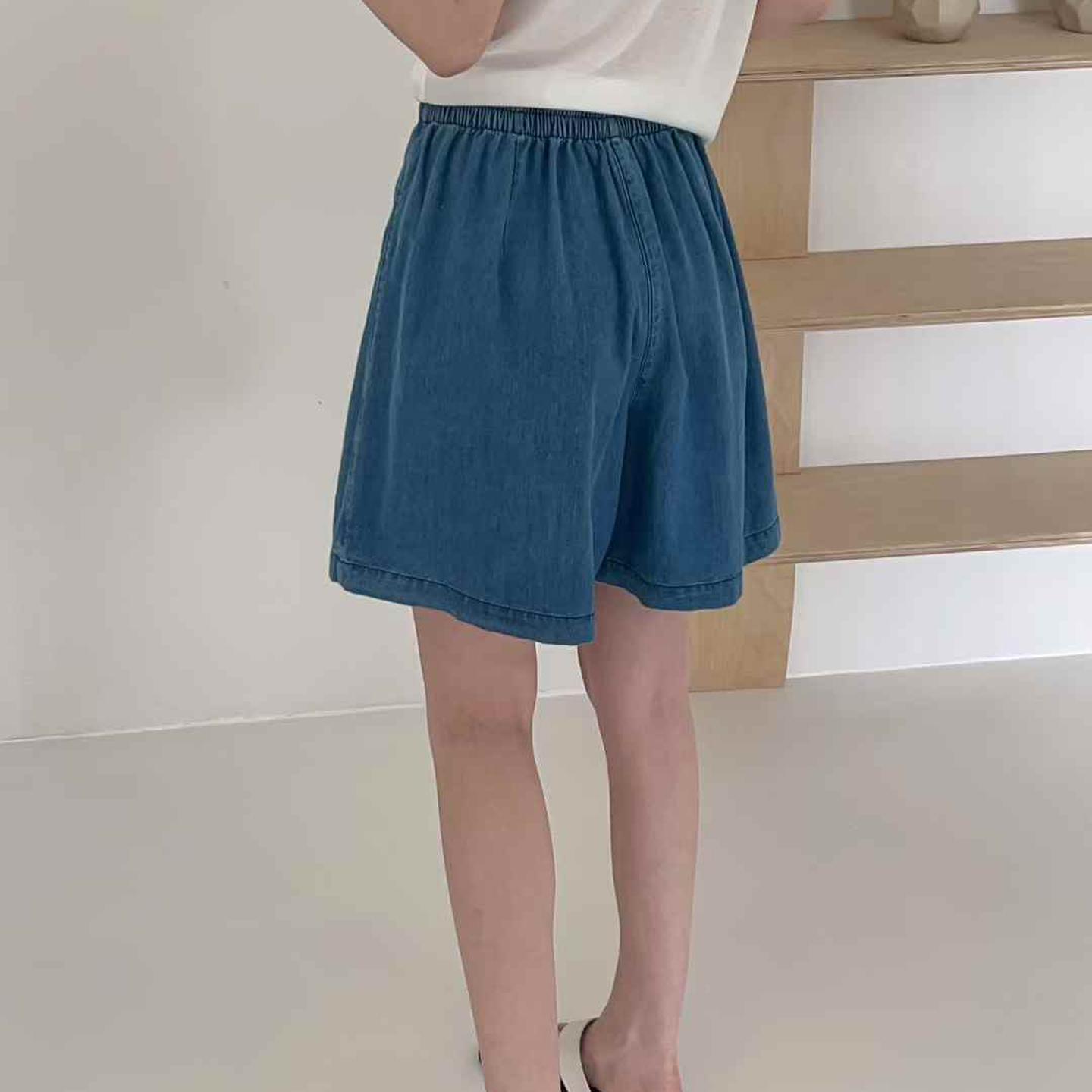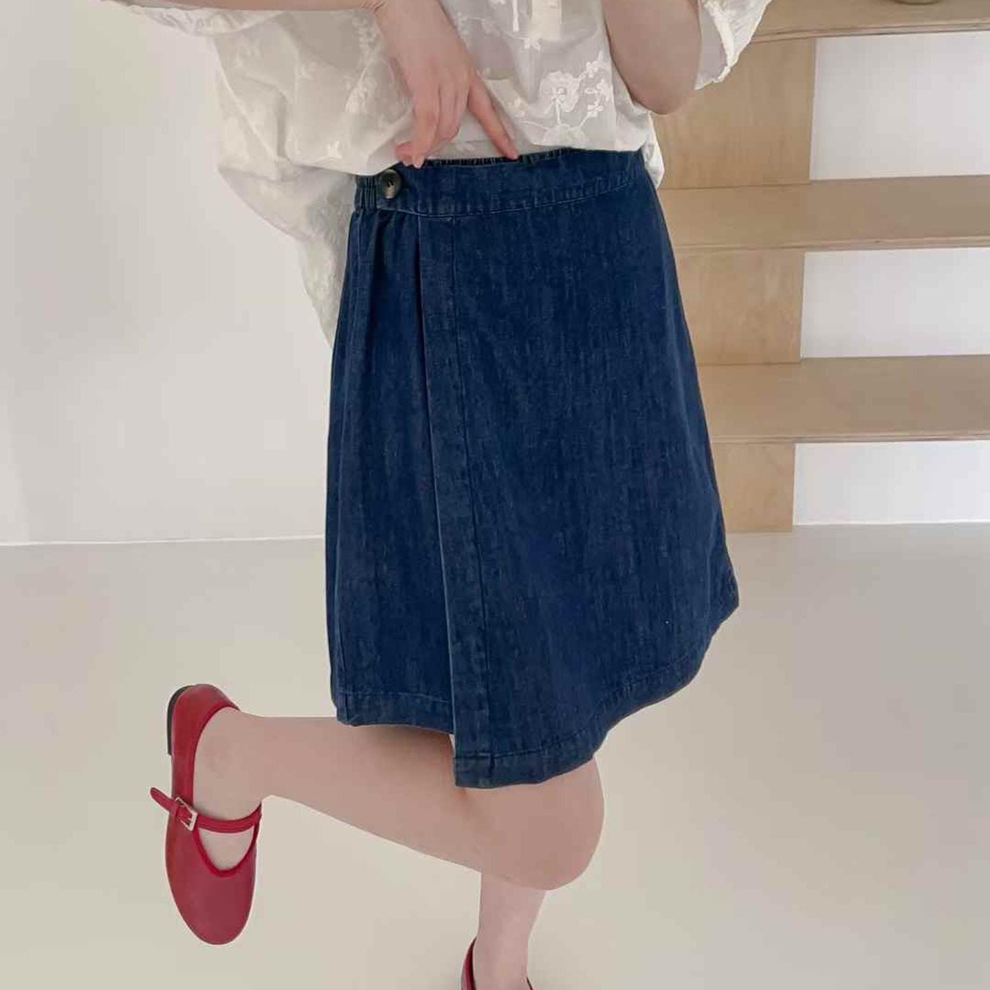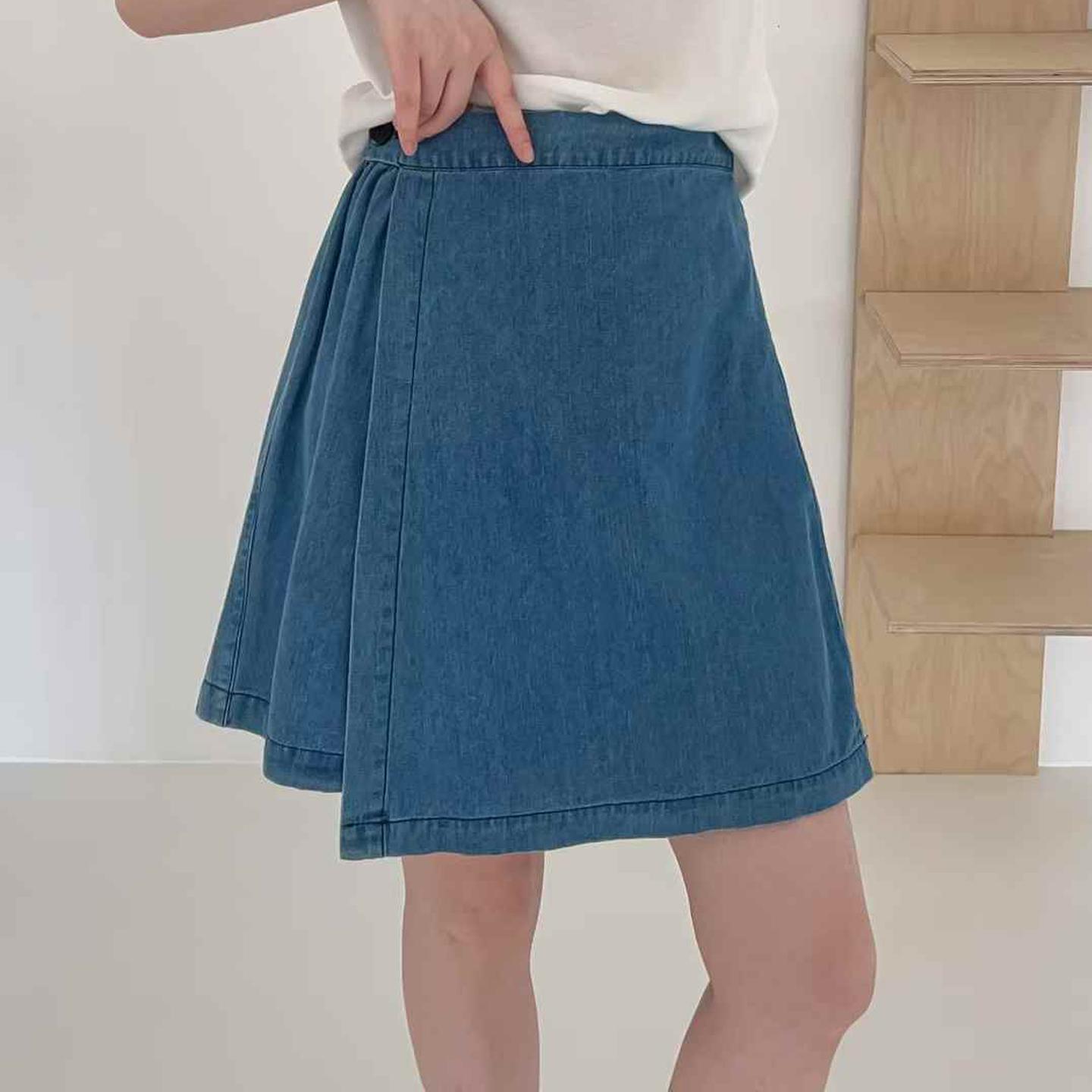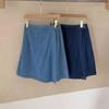 2025 Verano Nuevo Retro Irregular Azul Oscuro Falda Corta de Mezclilla Delgada Pantalones de Mujer Cintura Alta Slim Versátil Pantalones Casuales