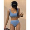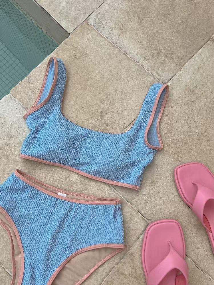 Fábrica de Origen Ins Chaleco Retro Traje de Baño Simple con Abertura para Mujer Color Macarrón Vacaciones de Verano Bikini para Aguas Termales