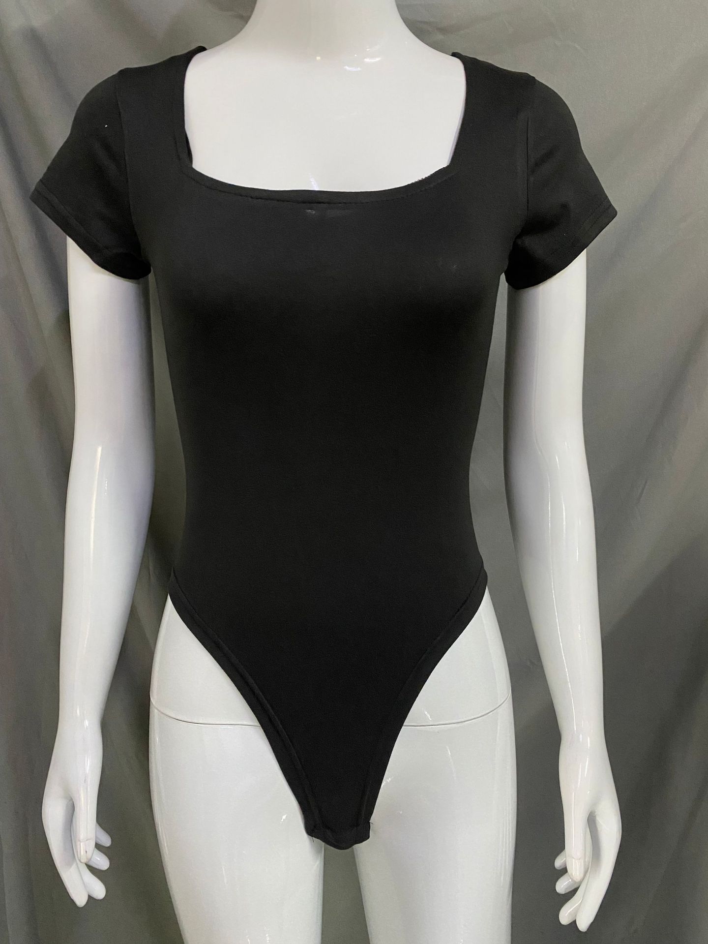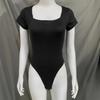 2025 Verano Europeo y Americano Nuevo Top Tubo con Cuello de una Línea Moda Sexy Ajustado Color Puro Manga Corta Mono