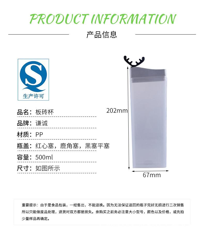 Taza de Té con Leche de Celebridad de Internet de 500 ml PP Resistente a Altas Temperaturas Taza Creativa de Ladrillos Botella de Plástico Desechable Botella para Bebidas Botella para Jugo