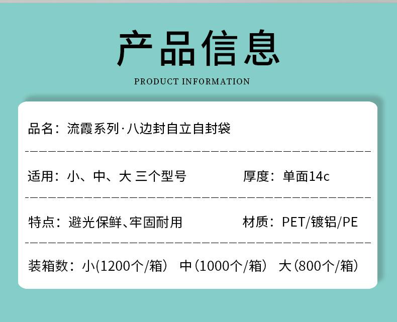 Bolsa Ziplock con Cierre Bolsa de Sello de Ocho Lados Bolsa de Empaque Grado Alimenticio para Té Alimentos Impresión de Empaque para Café de Papel Aluminio