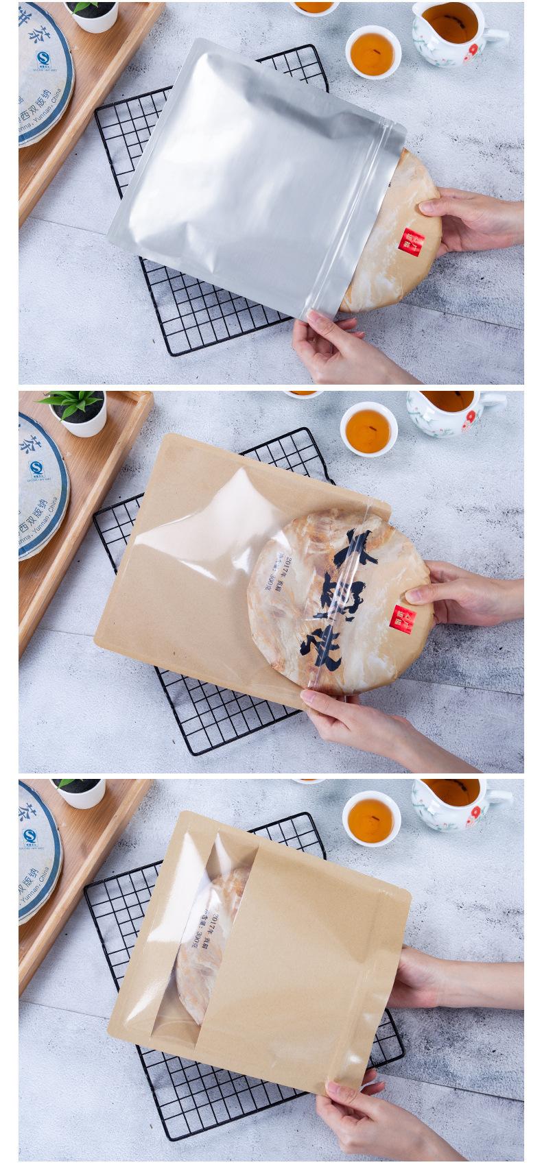 Bolsa de Embalaje para Pastel de Té Papel Kraft Lámina de Aluminio Almacenamiento de Té Bolsa Sellada a Prueba de Polvo Almacenamiento de Té Pu'er Bolsa Autosellable