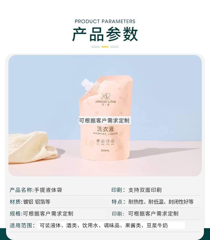 Bolsa de envasado portátil de líquidos, personalizada, para leche de soja, papel de aluminio compuesto, bolsa de envasado suave, detergente para ropa, bolsa con boquilla autoportante