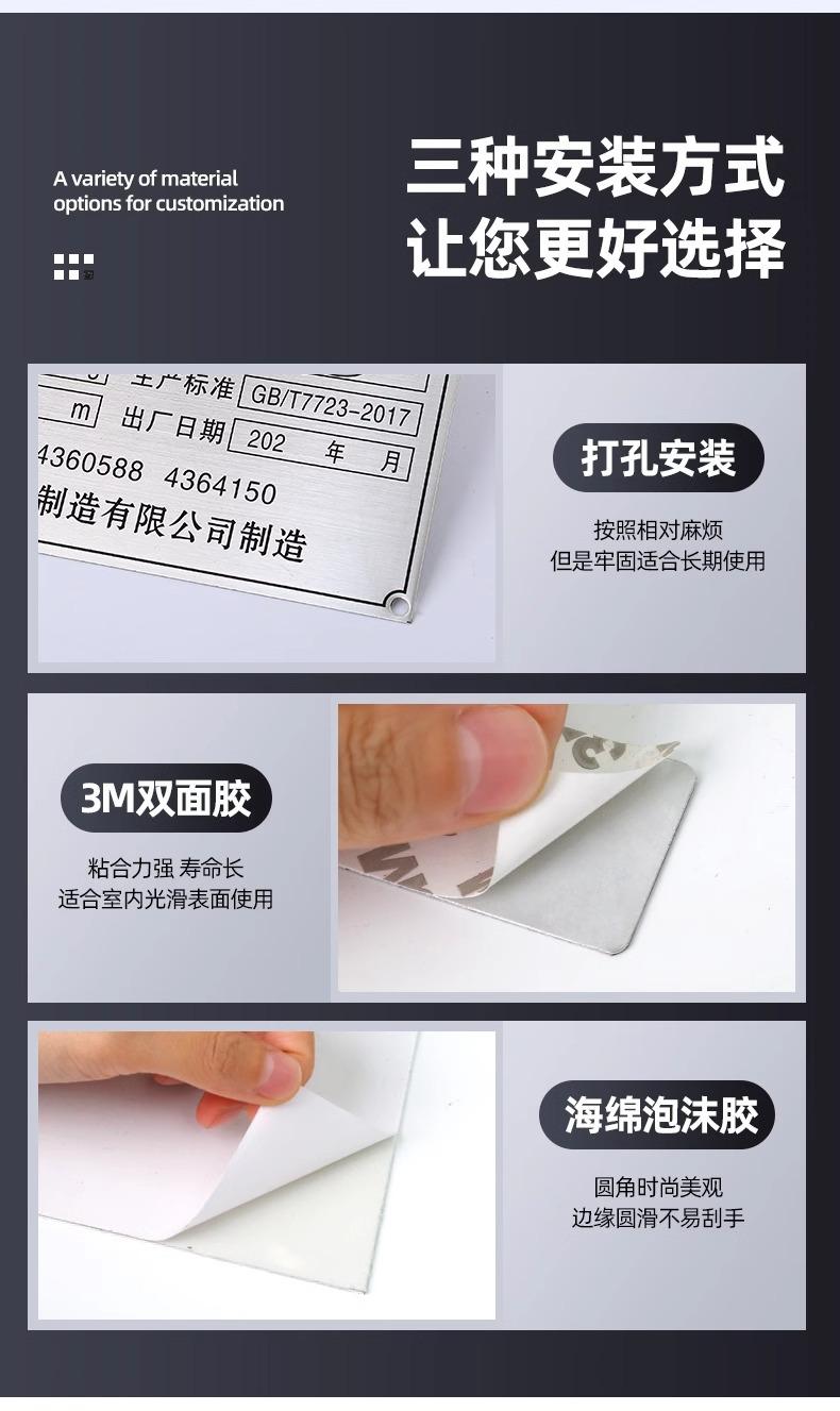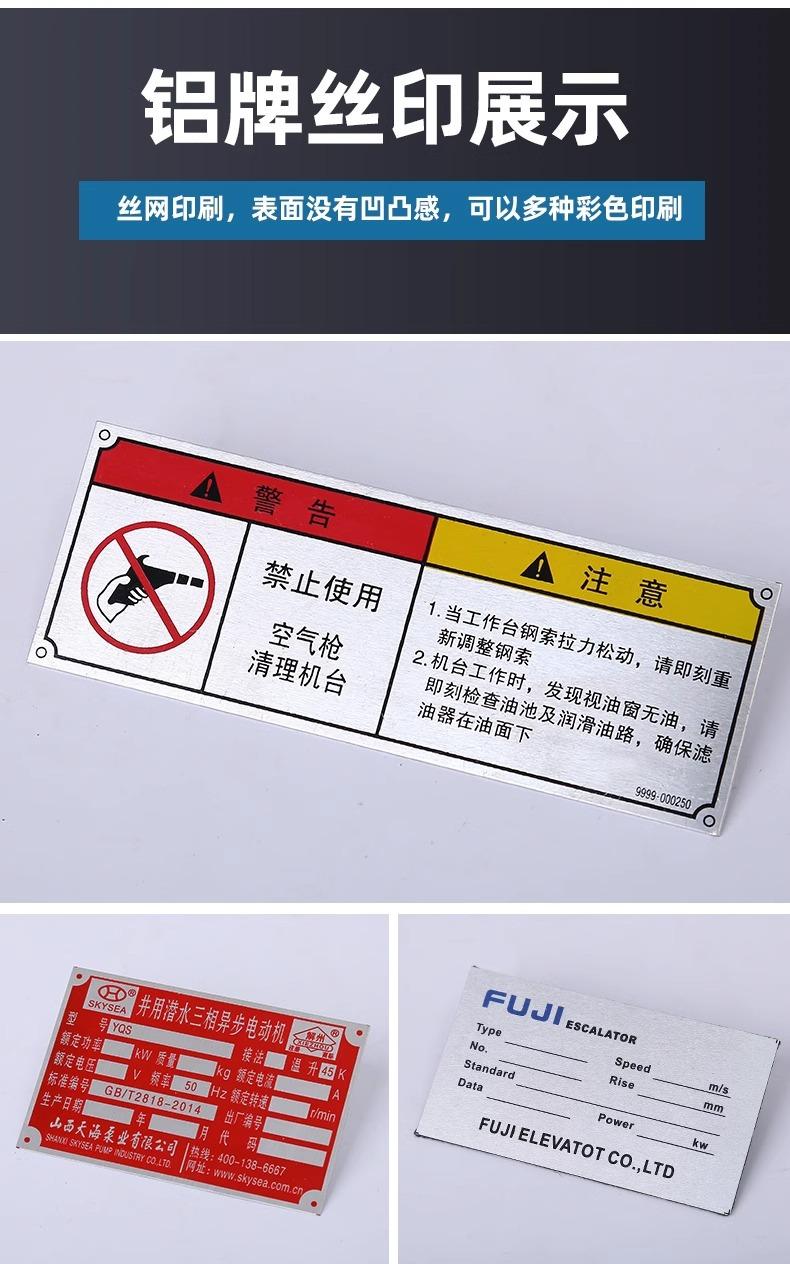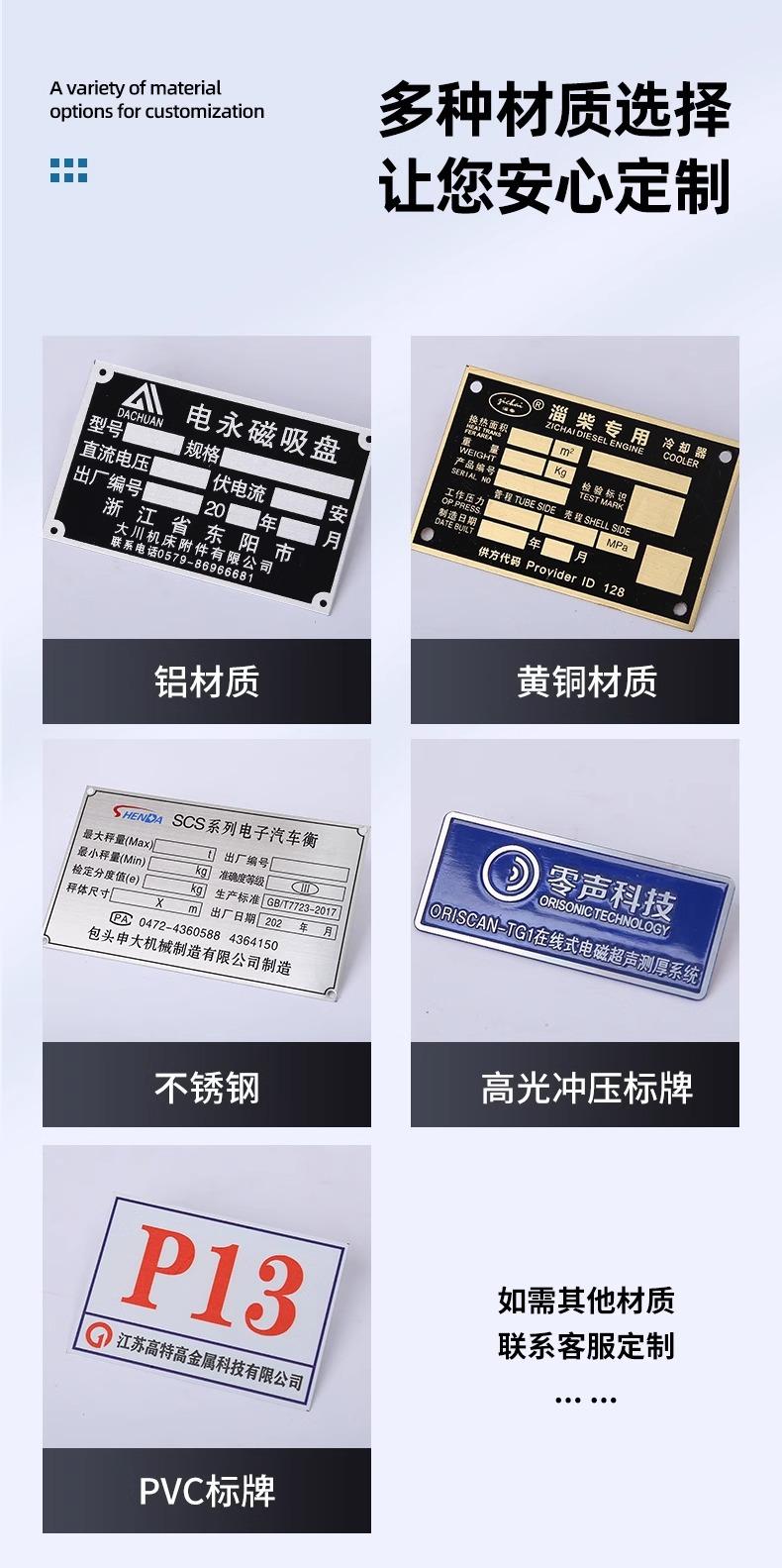 Acero Inoxidable Cobre Metal Placa de Nombre Hecho a Medida Panel de Aleación de Aluminio Cama de Motor Maquinaria Marca Registrada Corrosión Equipo Letrero de Aluminio