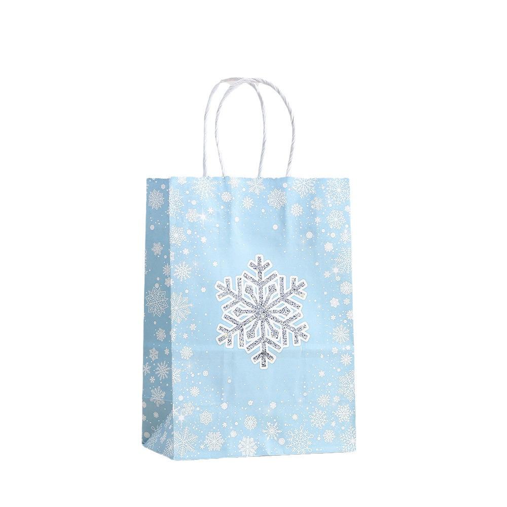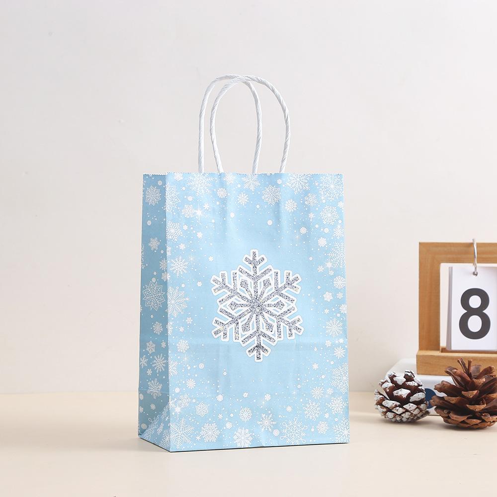 Bolsa de embalaje de regalo de copo de nieve navideño, bolsa de mano para embalaje de regalo para fiesta navideña, bolsa de regalo de papel Kraft impreso al por mayor