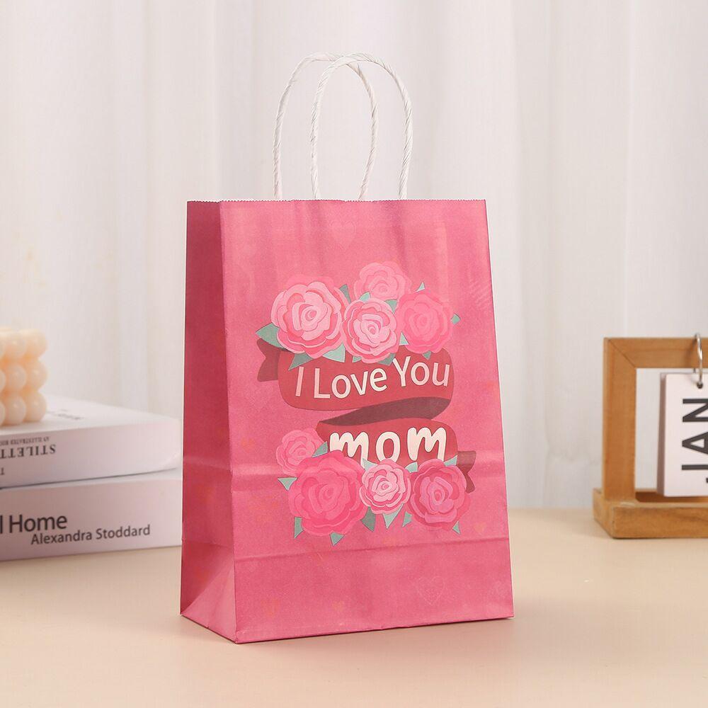 Bolsa de Papel Kraft para Regalo del Día de la Madre Transfronterizo, Bolsa de Embalaje tipo Satchel para Fiesta y Vacaciones, Nueva Bolsa de Regalo Creativa para Niños