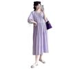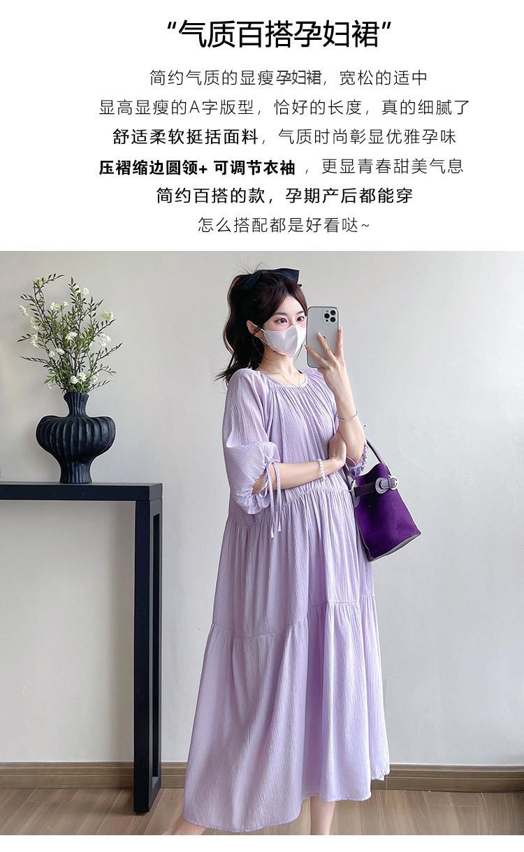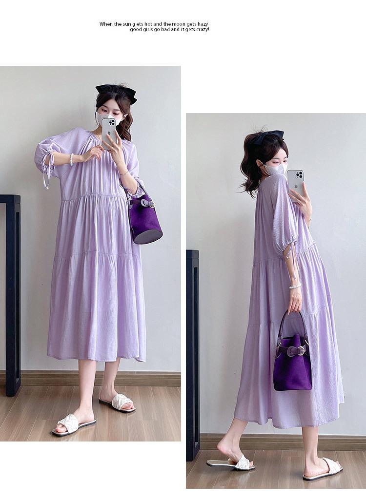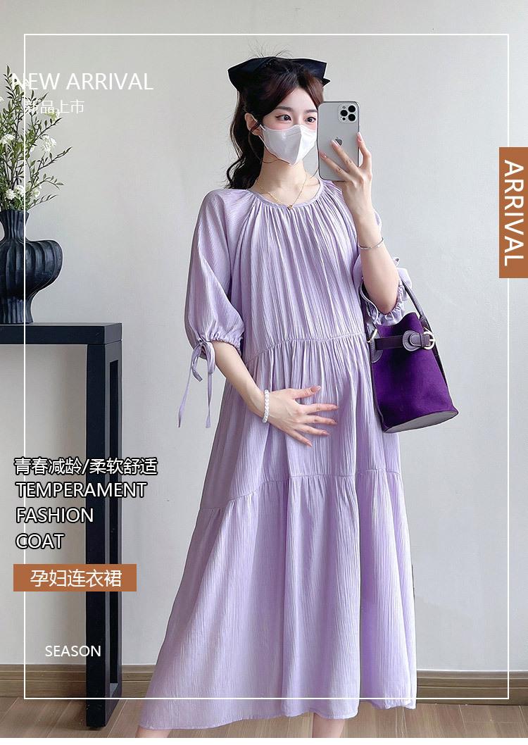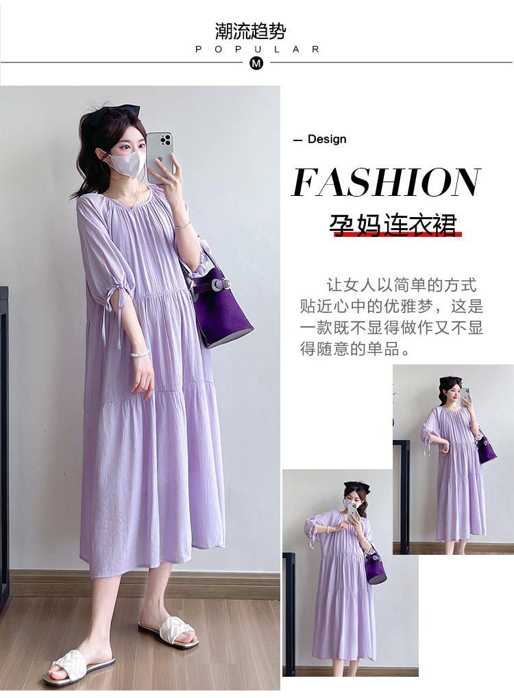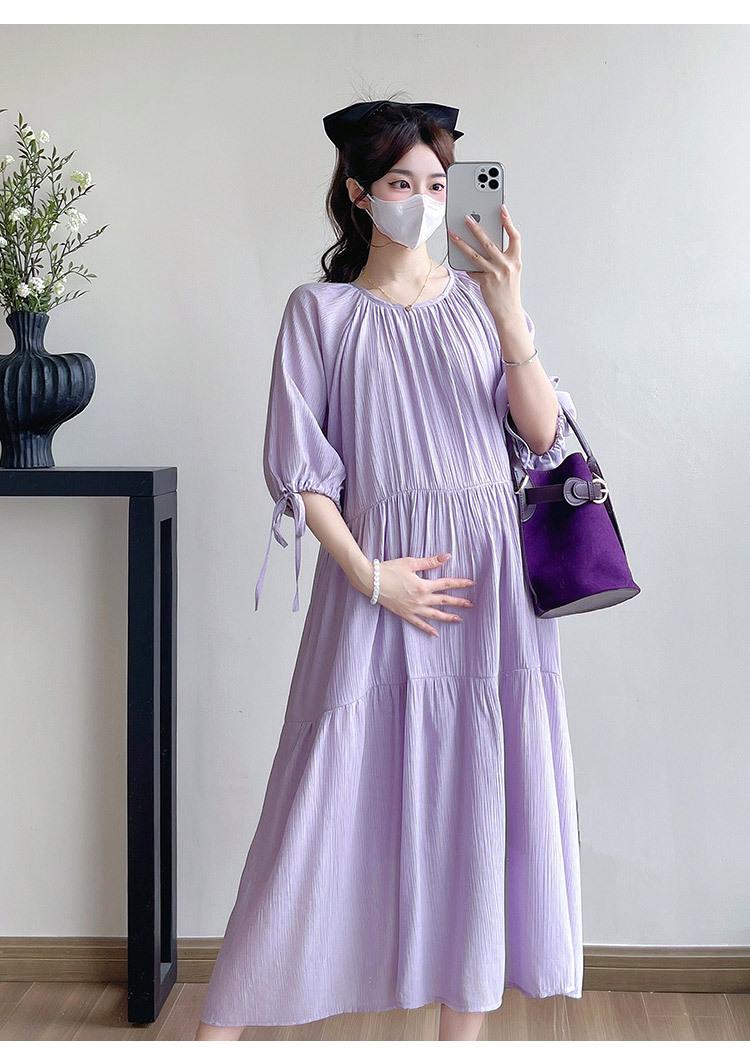 Maternidad 2025 Verano Nuevo Moda Coreana Blanco Suelto Cubre Carne Temperamento Francés Talla Grande Vestido para Mujeres Embarazadas