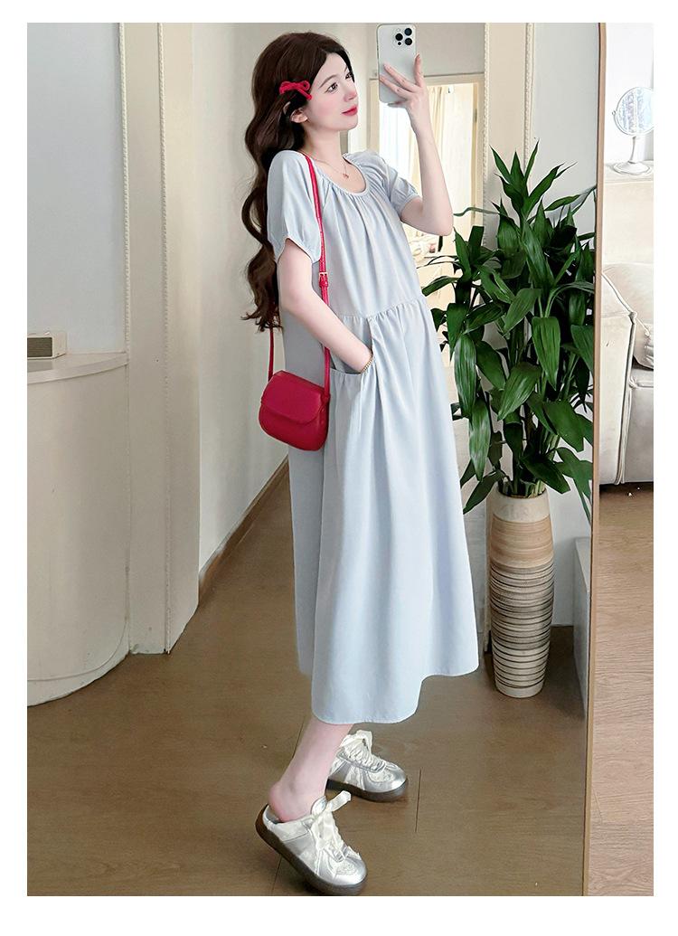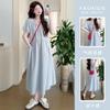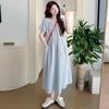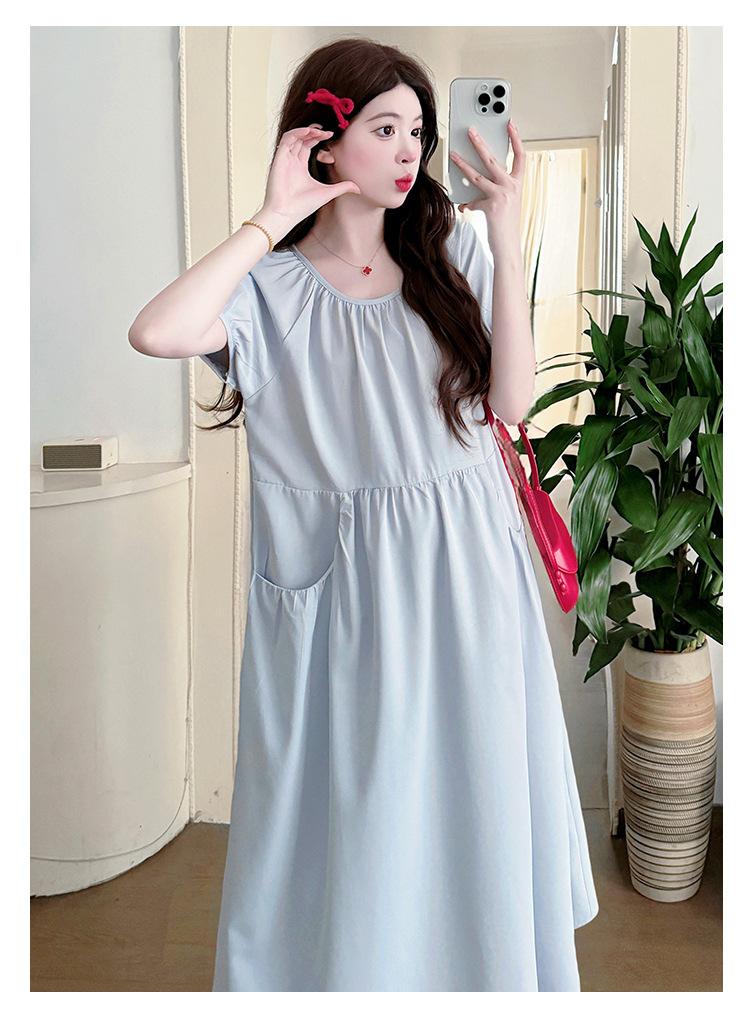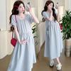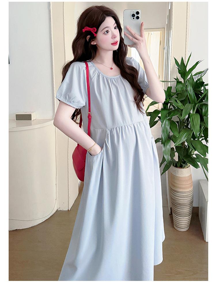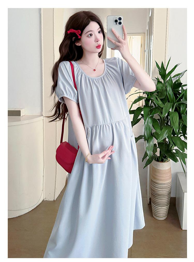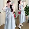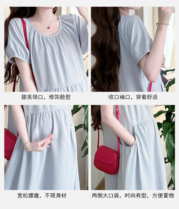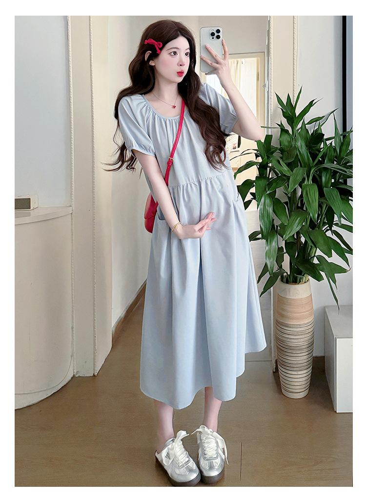 Maternidad 2025 Verano Nuevo Moda Coreana Temperamento Cuello Redondo Sencillo Holgado Talla Grande Vestido para Mujeres Embarazadas