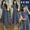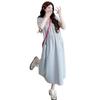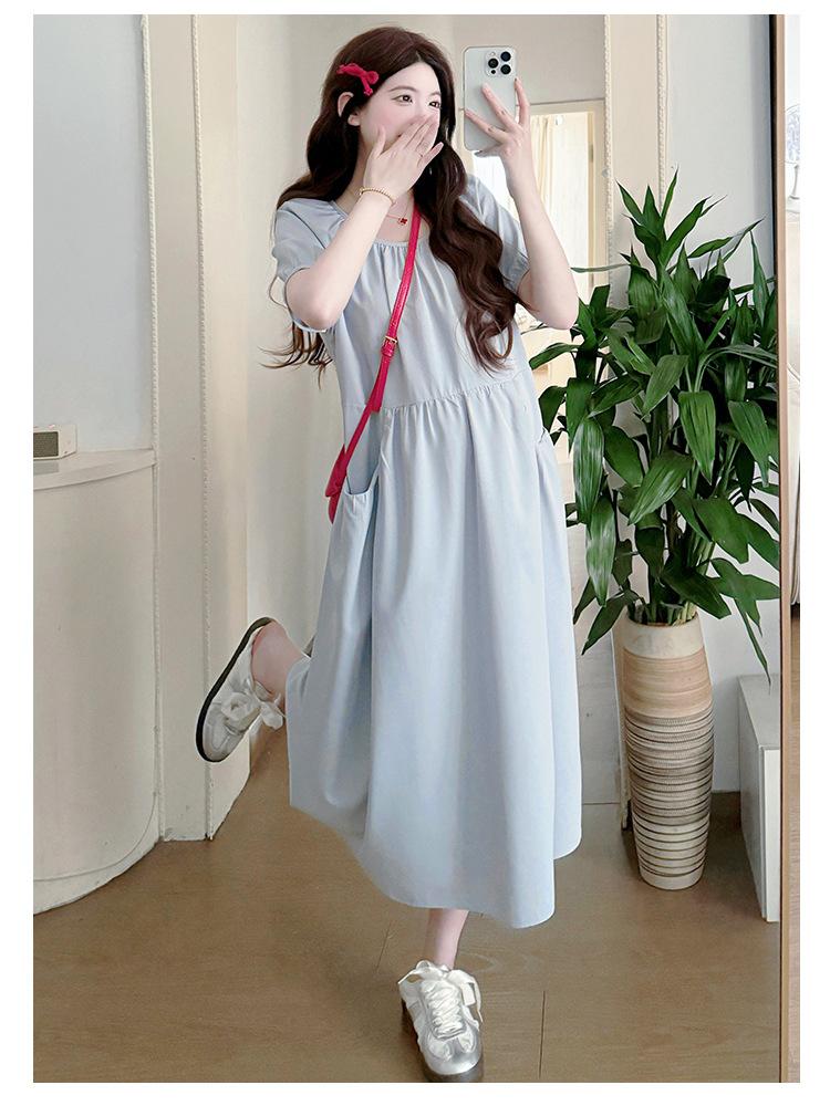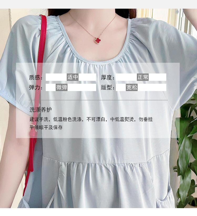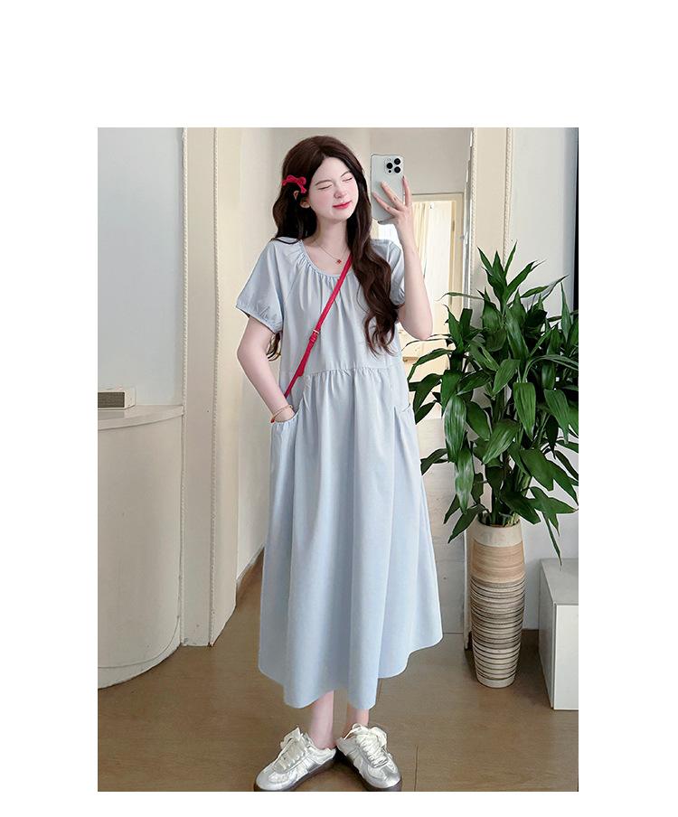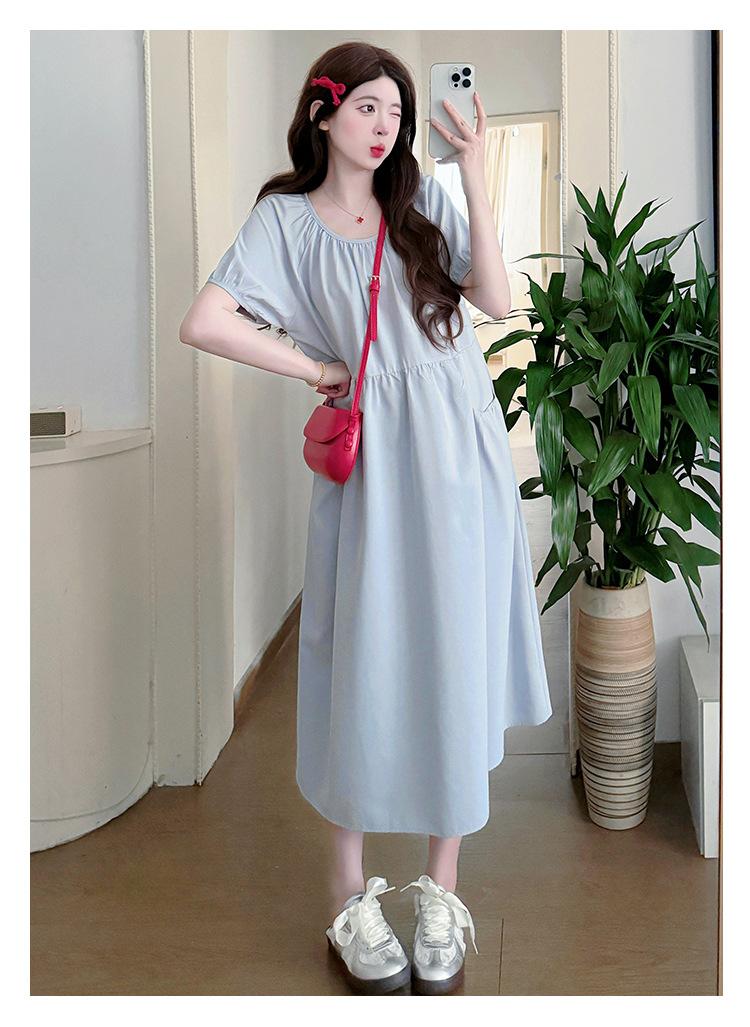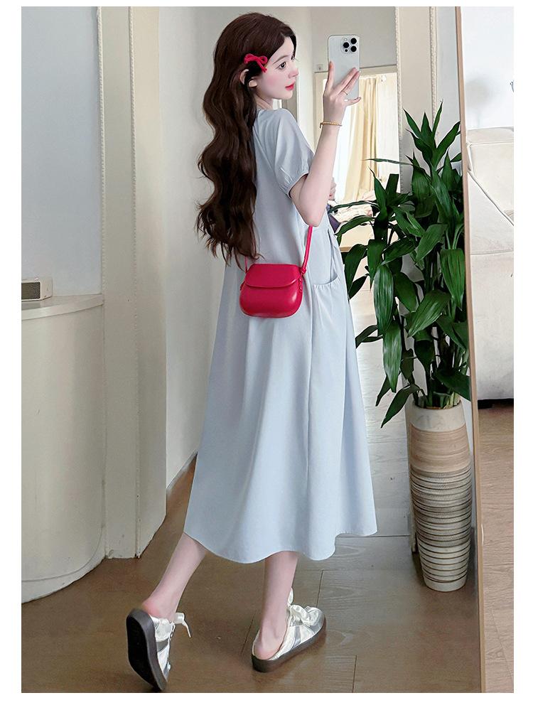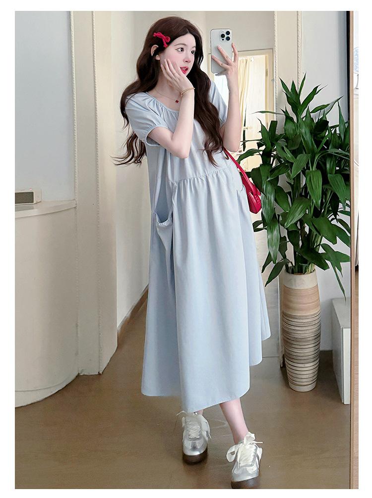Maternidad 2025 Verano Nuevo Moda Coreana Temperamento Cuello Redondo Sencillo Holgado Talla Grande Vestido para Mujeres Embarazadas