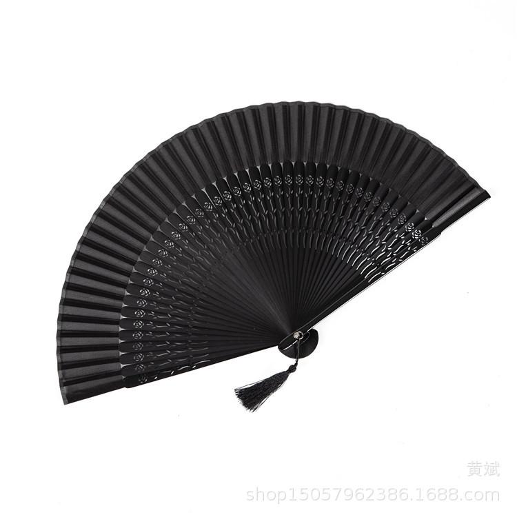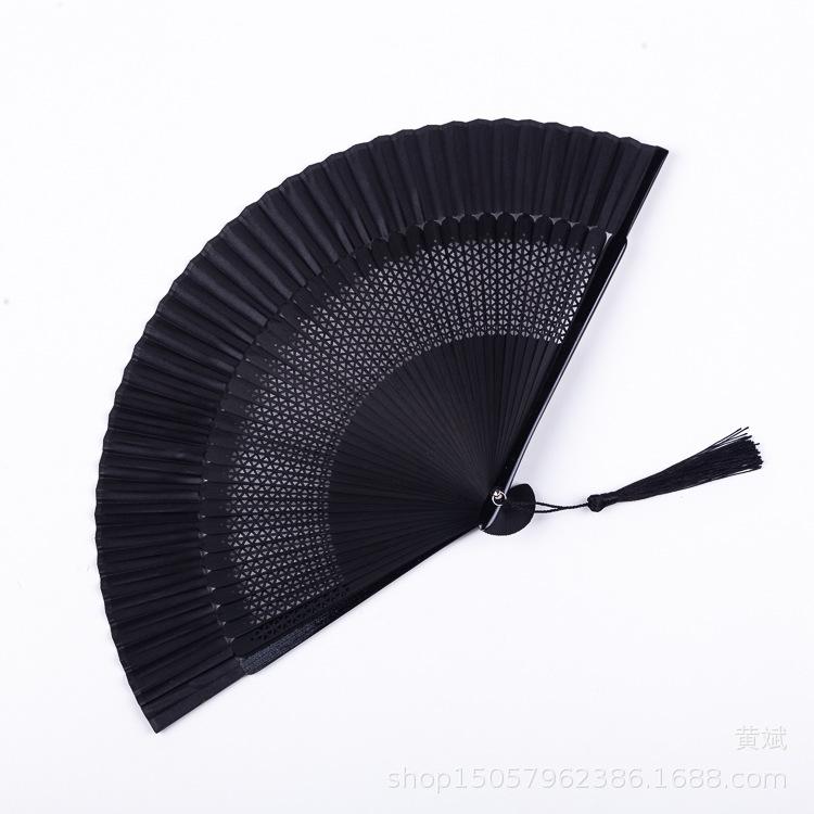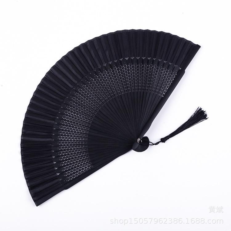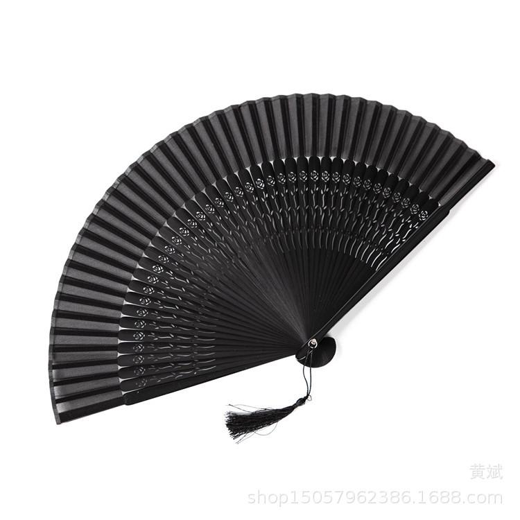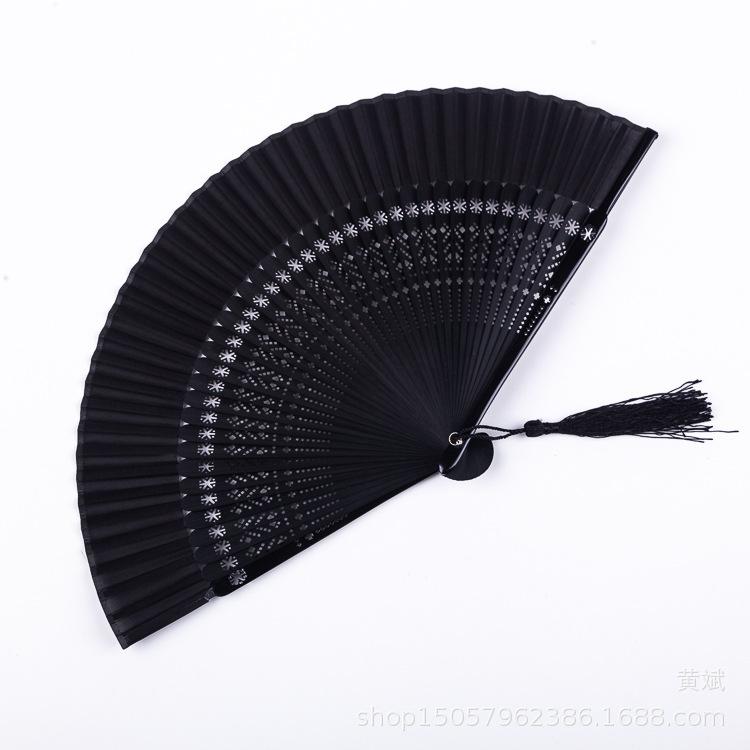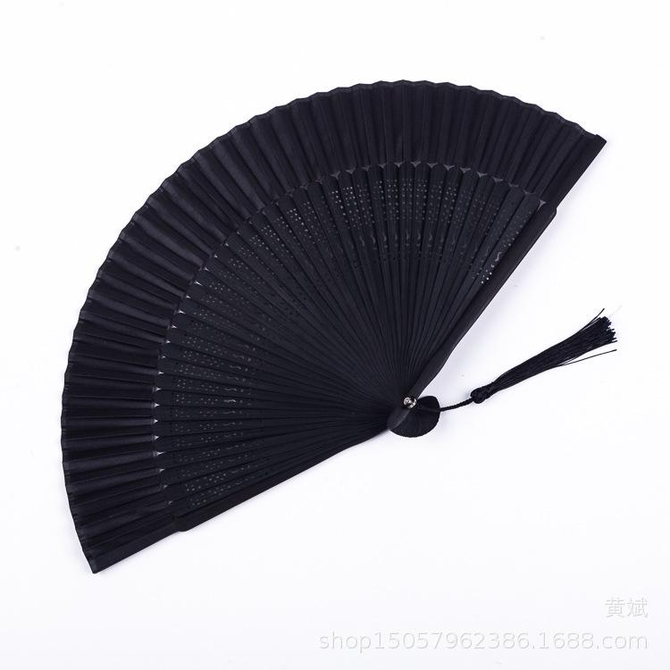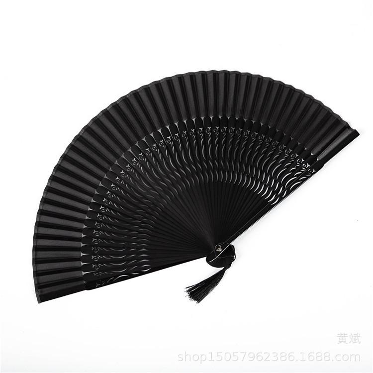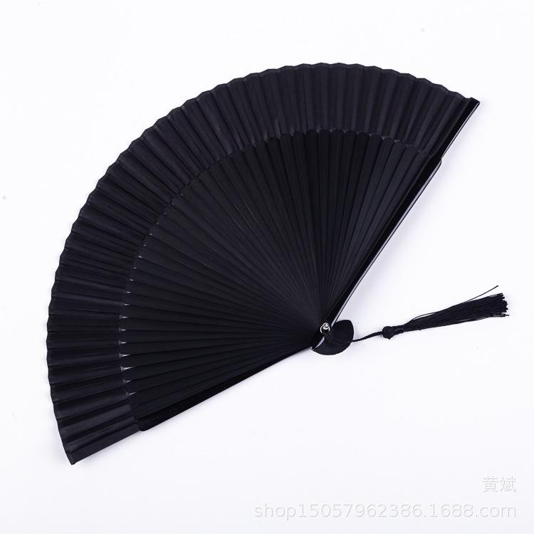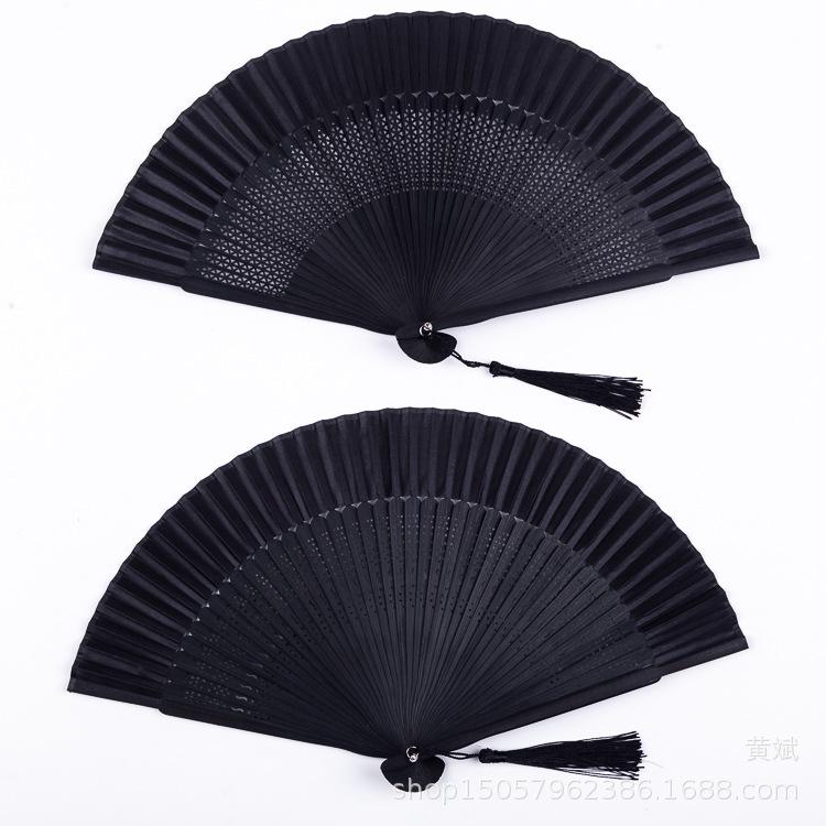 Abanico plegable pintado todo de negro estilo chino para mujer abanico artesanal para danza clásica antigua Amazon abanico más vendido