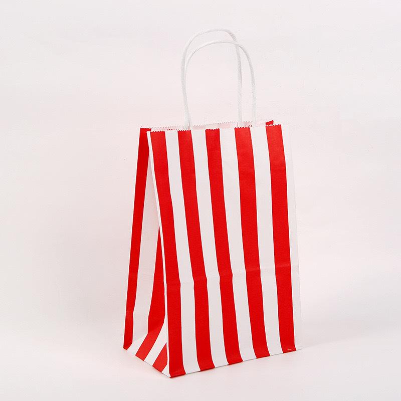 Nueva bolsa de embalaje portátil con rayas verticales, moderna y creativa bolsa de embalaje con rayas verticales, bolsa de compras de papel Kraft al por mayor