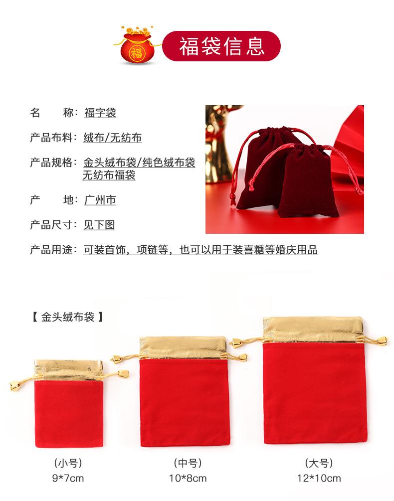 Bolsa de Franela Bolsa para Joyas Bolsa de Regalo de Tela No Tejida Bolsa de Regalo de Bendición de Año Nuevo del Festival de Primavera Bolsa de Regalo para Vacaciones Tamaño