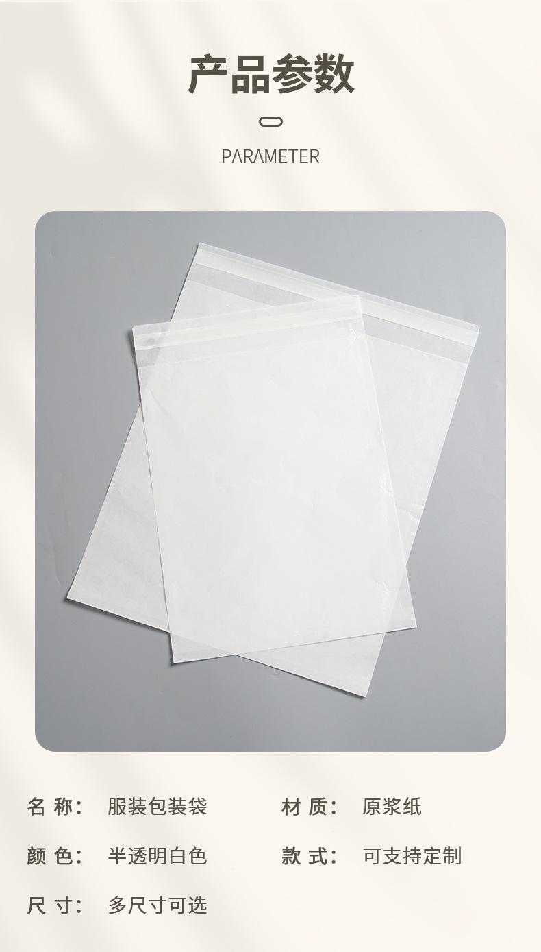 Bolsa de Papel Glassine Totalmente Degradable Amigable con el Medio Ambiente Bolsa de Embalaje para Ropa Camiseta Sudadera Bolsa Especial Bolsa de Alta Gama Impermeable y a Prueba de Humedad