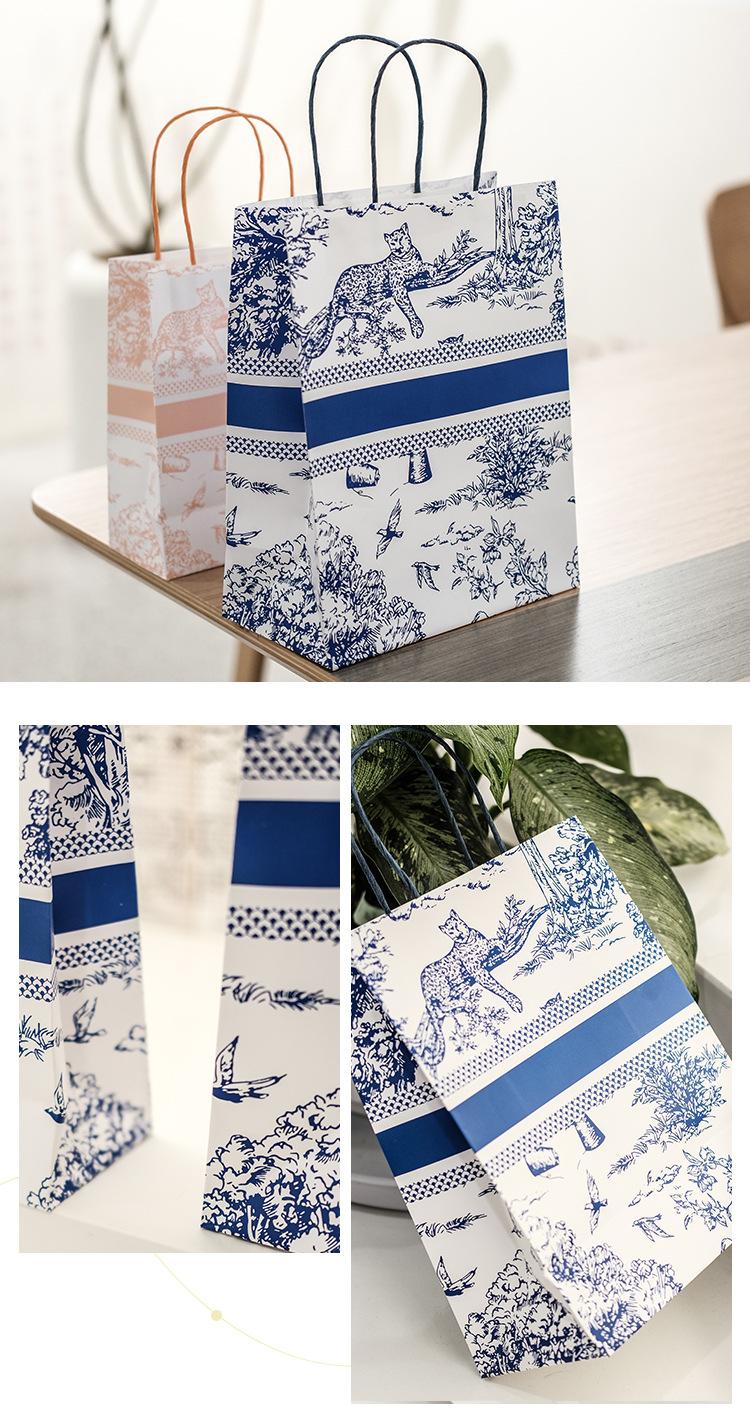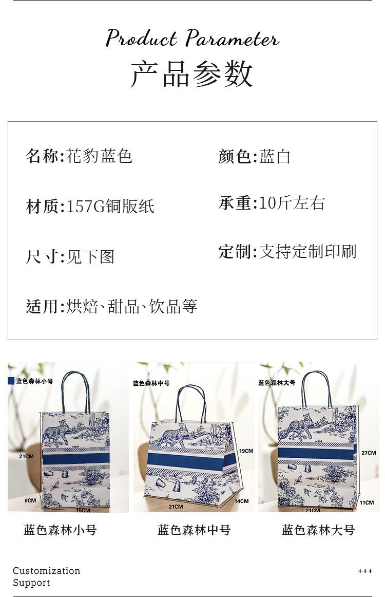 Embalaje para Postres Bosque Azul Bolsa de Papel Kraft Embalaje para Llevar Panadería Pastelería Bolsa de Papel de Mano