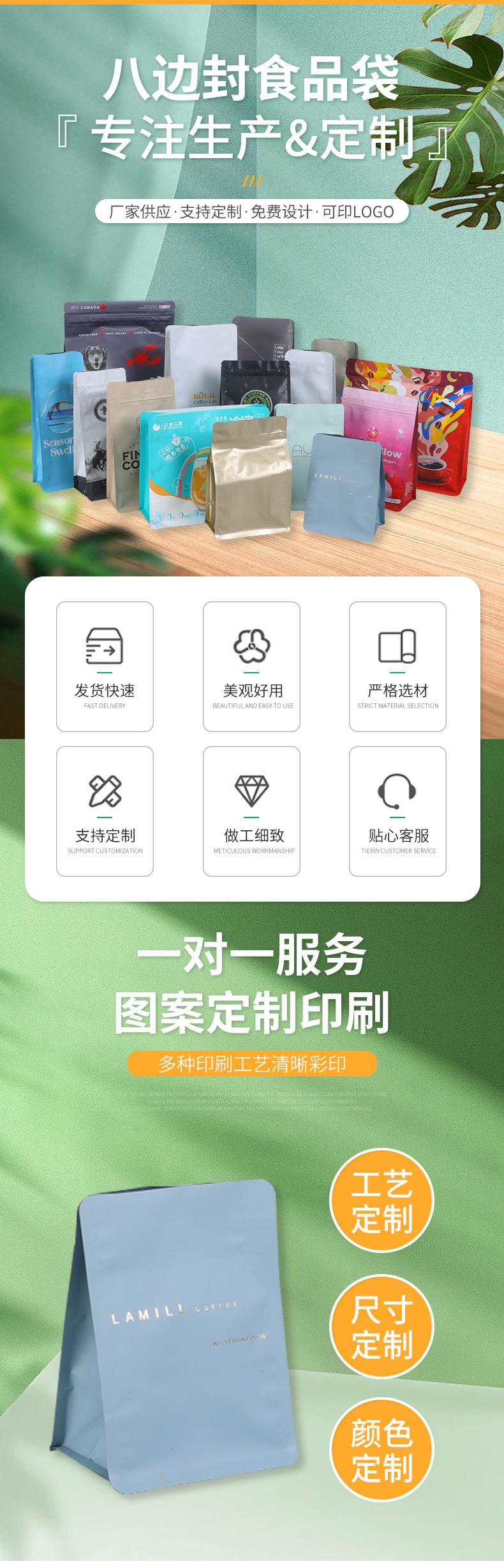 Bolsa de Café Sellado Lateral Unidireccional Empaque para Granos de Café Lámina de Aluminio Bolsa de Empaque Grado Alimenticio Café Propósito Especial Alta Barrera