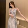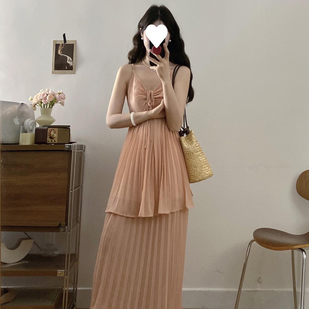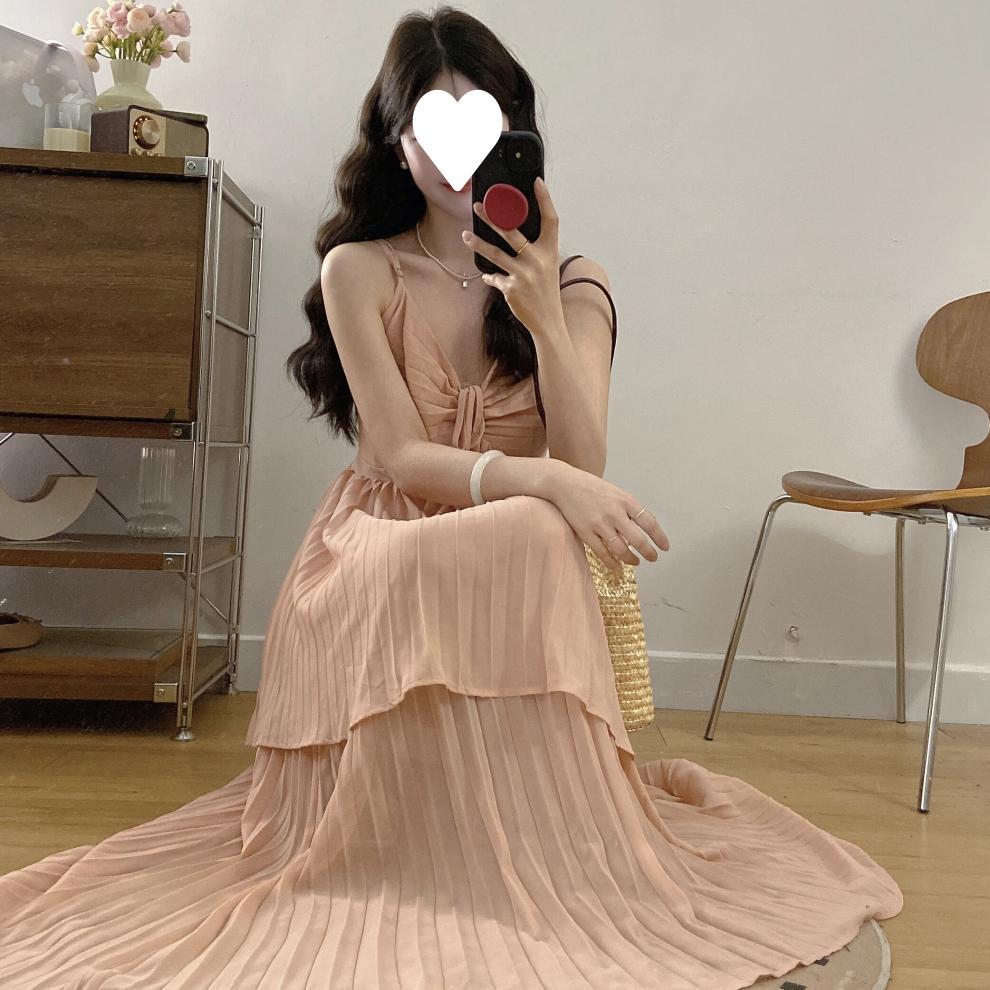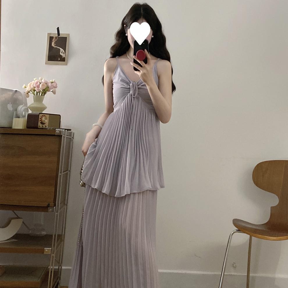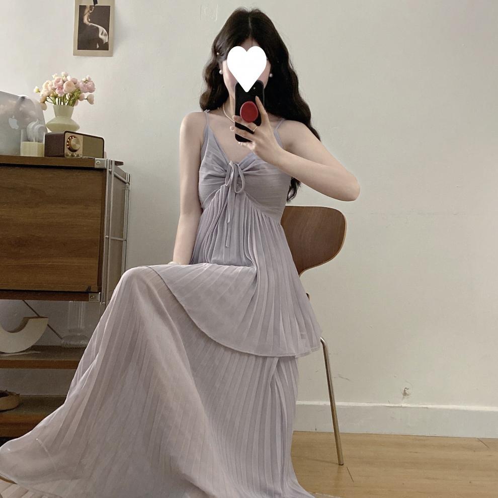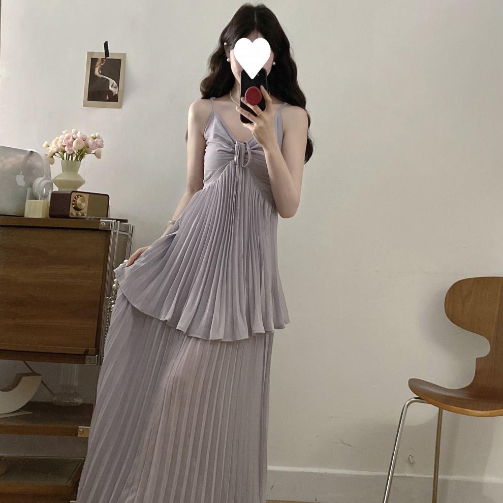 Pure Lust Elegante Vestido Lila con Tirantes para Mujer Verano 2025 Nuevo Vacaciones en la Playa Falda Larga