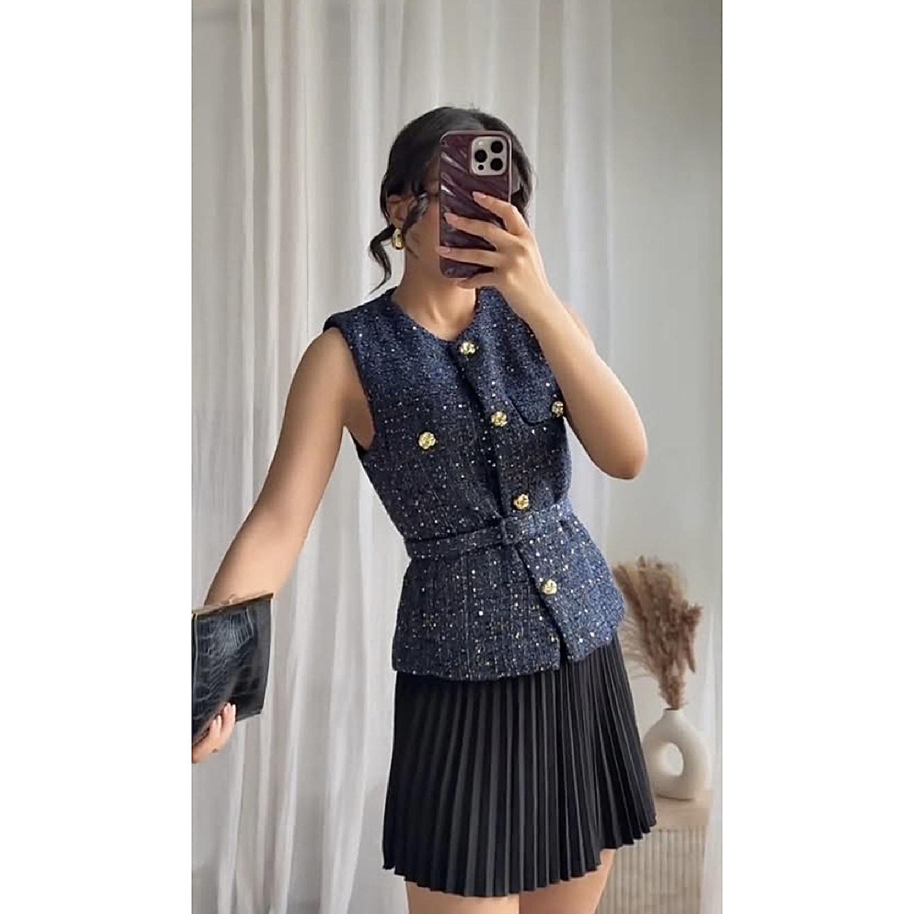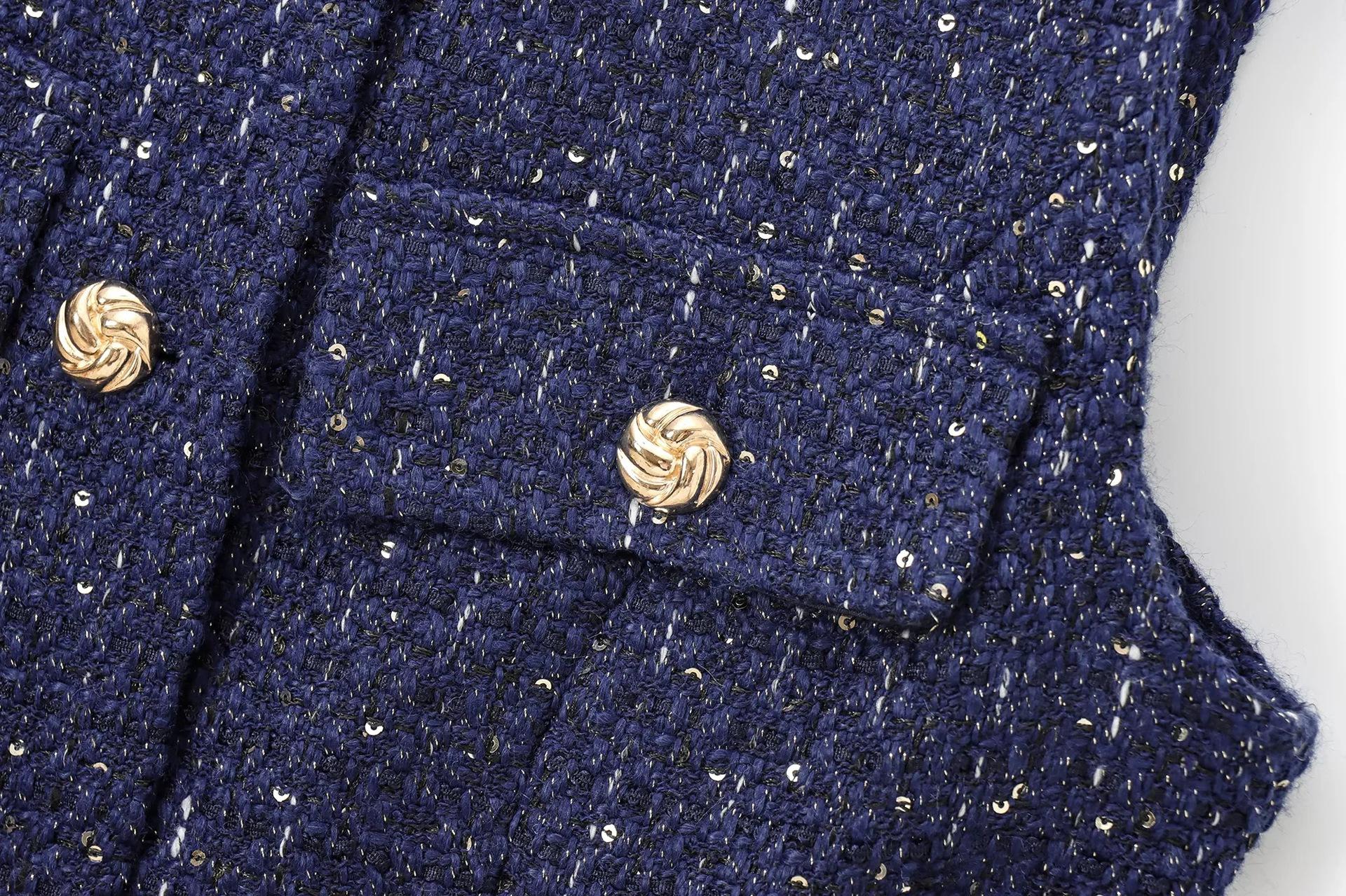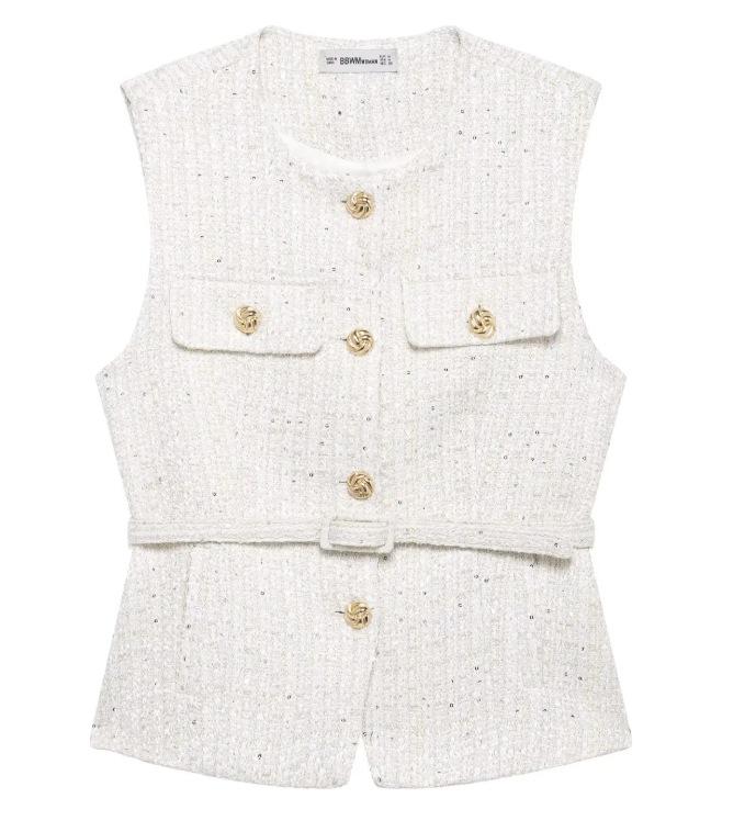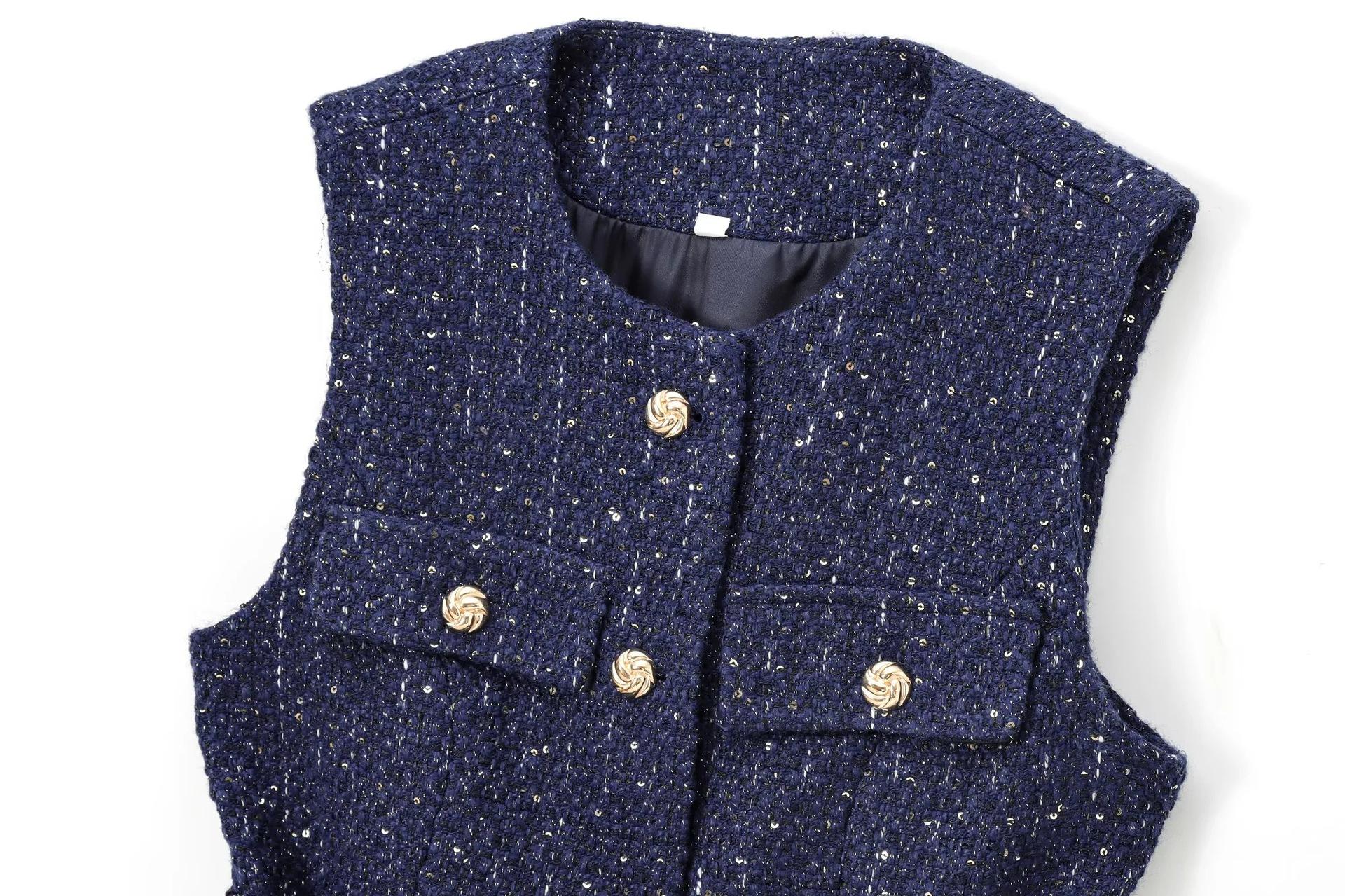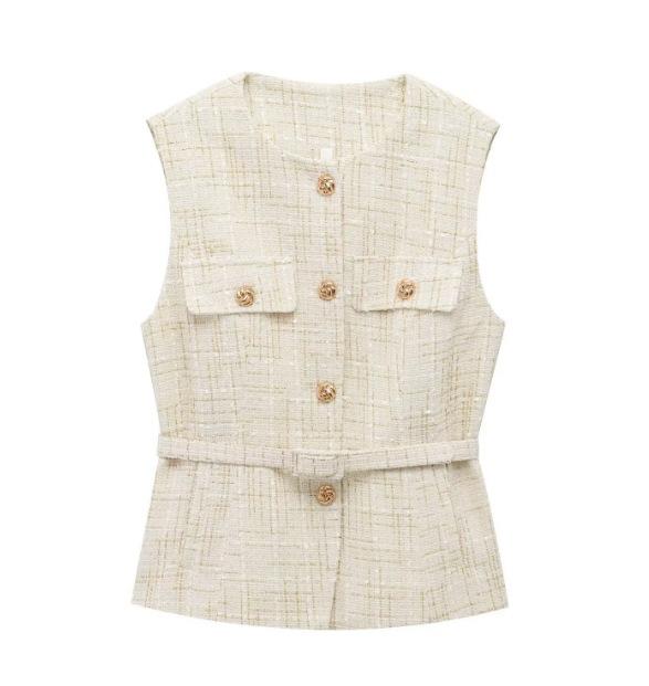 2025 Ropa al por mayor transfronteriza europea y americana Ins Celebridad de Internet Estilo caliente Chaleco con cinturón y textura de lentejuelas Yf-21186