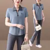 Traje deportivo Verano 2025 Nuevo Estilo coreano Manga corta Moda Casual Holgado Adelgazante Seda de hielo Delgado Ropa deportiva