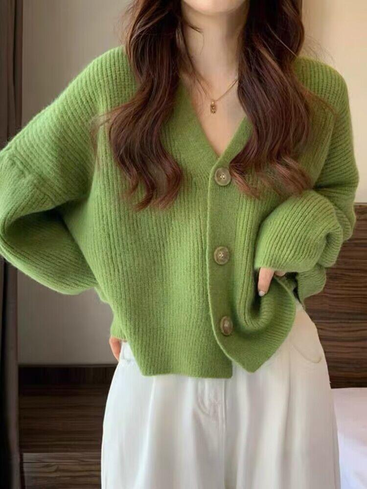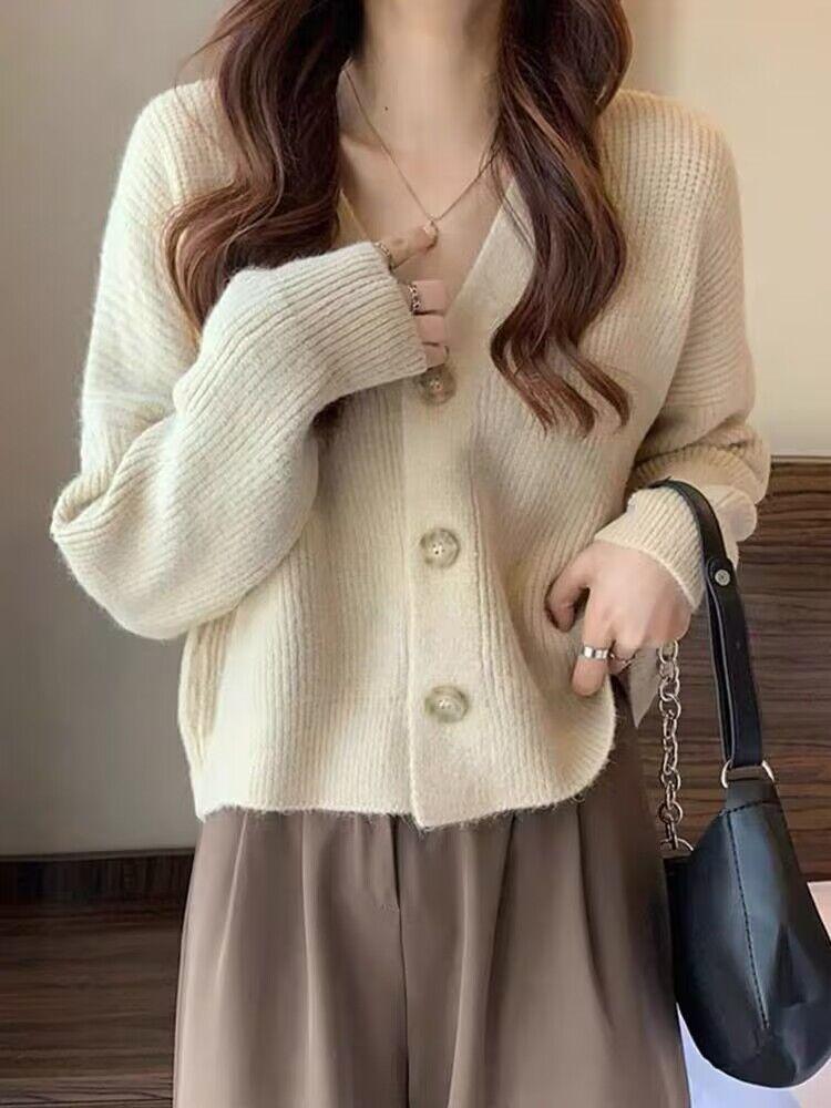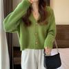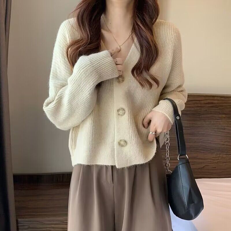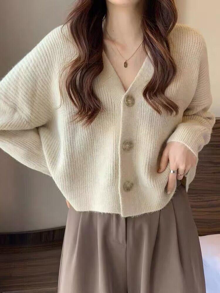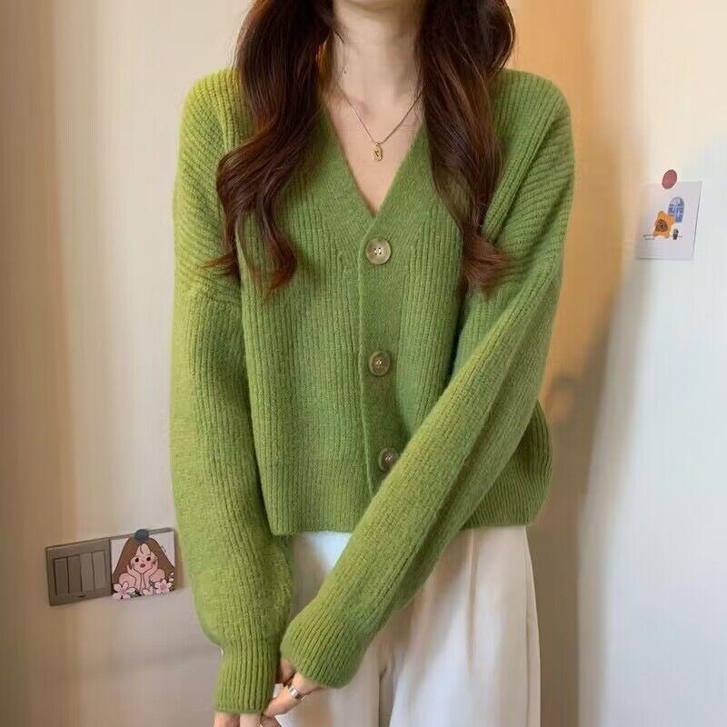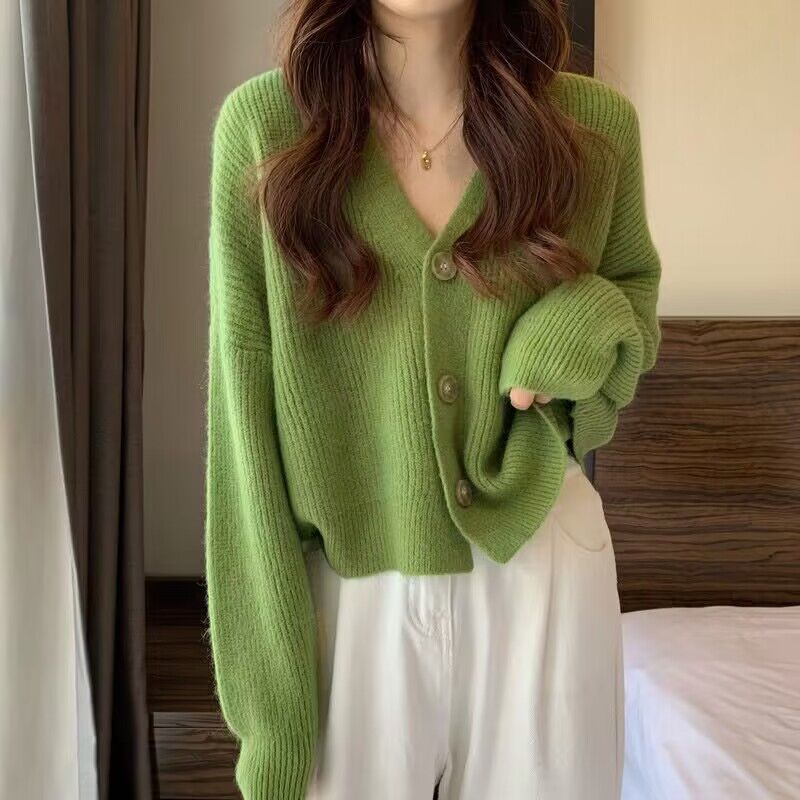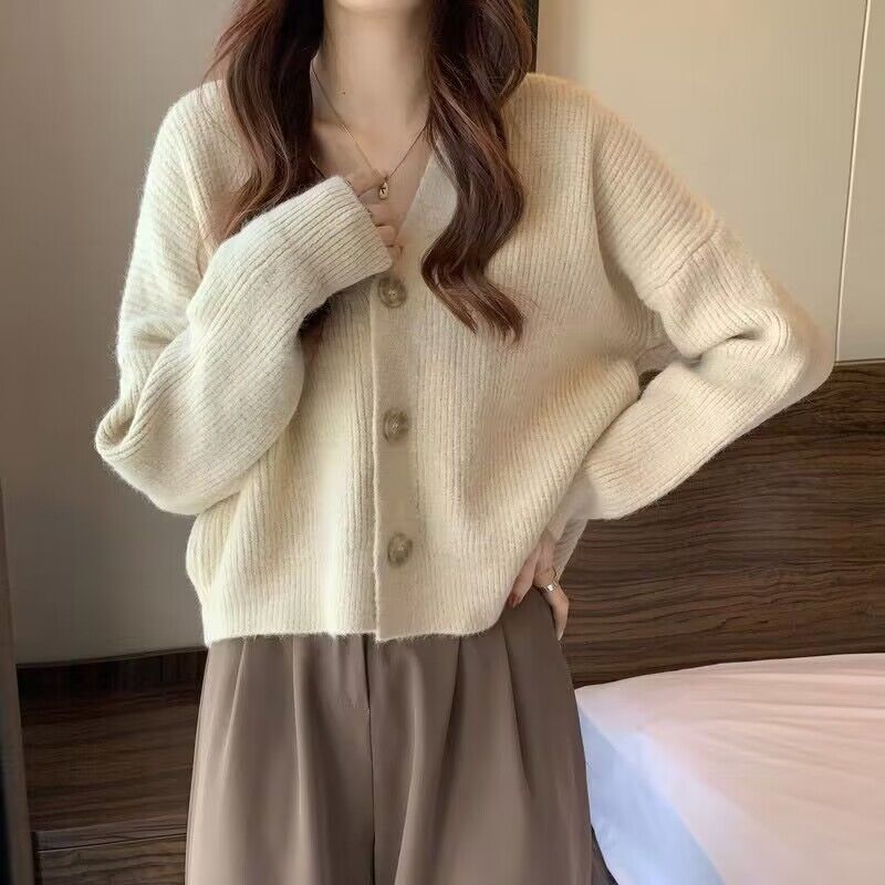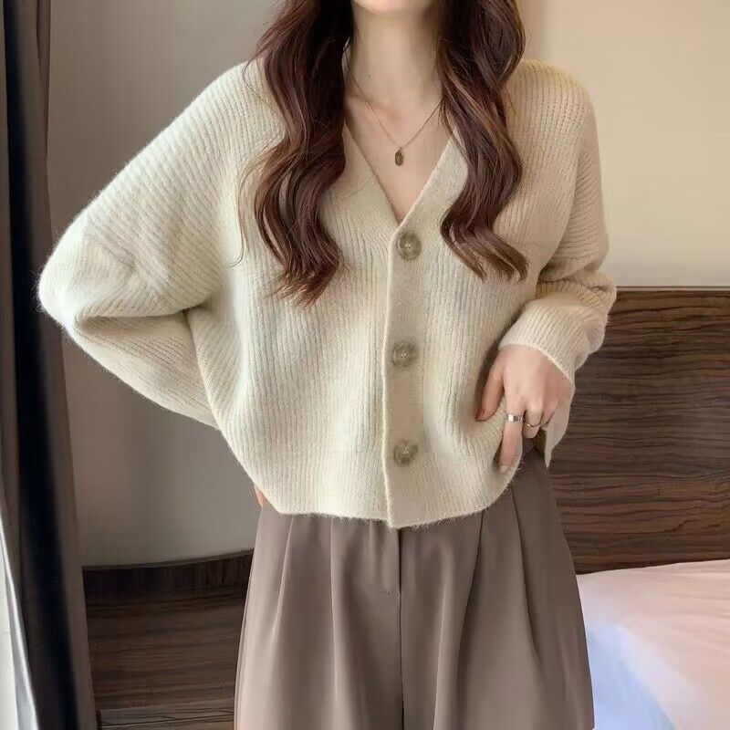 Otoño e Invierno Nuevo Suéter de Lana 100% para Mujer Suéter Corto de Punto Estilo Holgado Perezoso Chaqueta Cárdigan de Cachemira