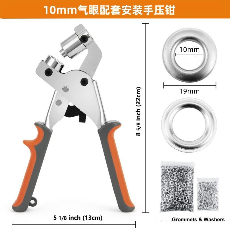 Ojales Plateados*500 Juegos Ojales de 10 mm+Arandela Blanca+(Alicates Gris-Naranja En Bolsa) Caja de Avión 1050 Gramos