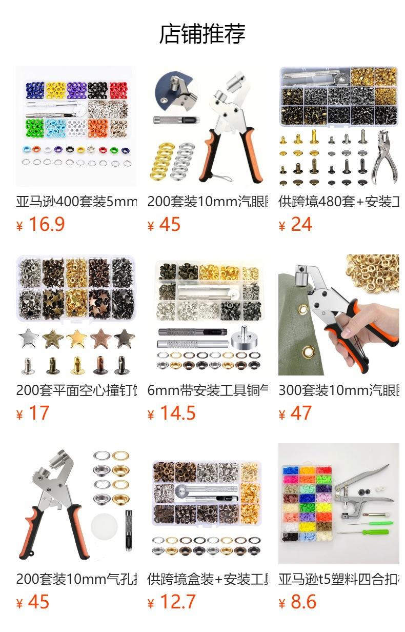 Ojales plateados*300 juegos ojales de 10 mm+arandelas negras+ (alicate gris-naranja embolsado) caja de avión 880 gramos