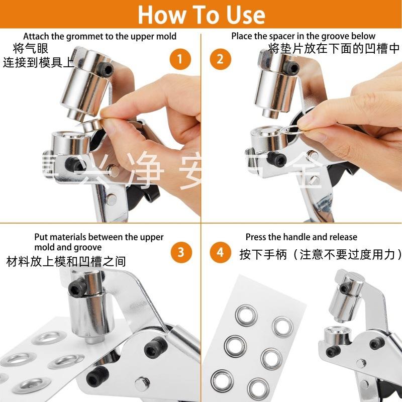 Ojales Plateados*200 Juegos Ojales de 10mm+Troquel Negro+(Alicates Gris-Naranja En Bolsa)Caja de Avión 780 Gramos