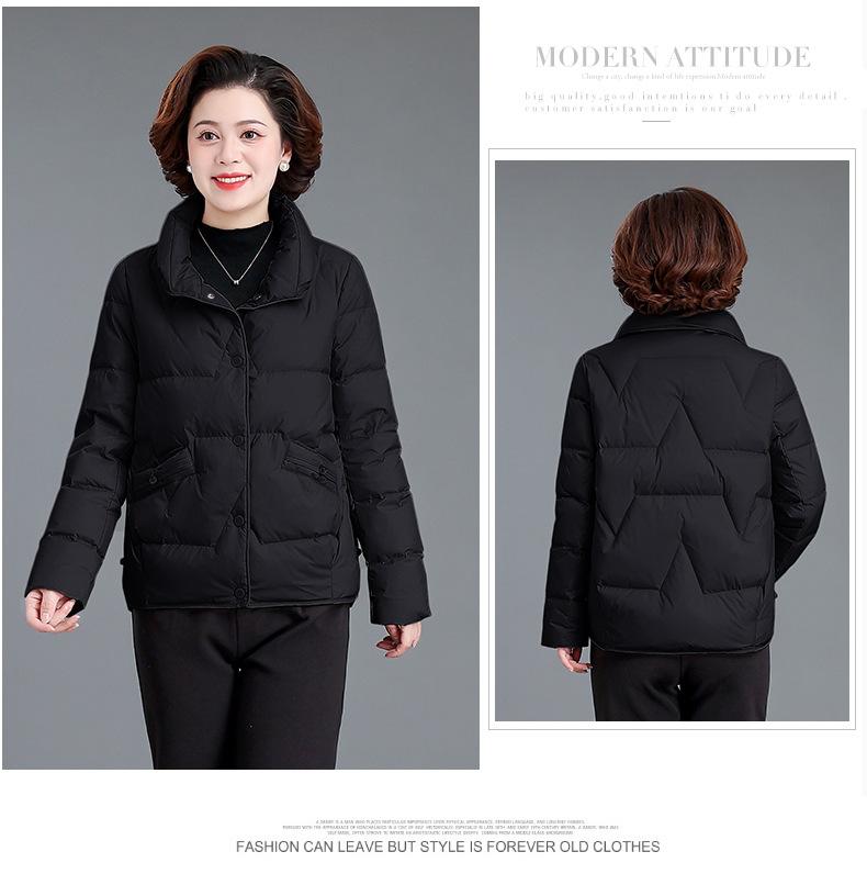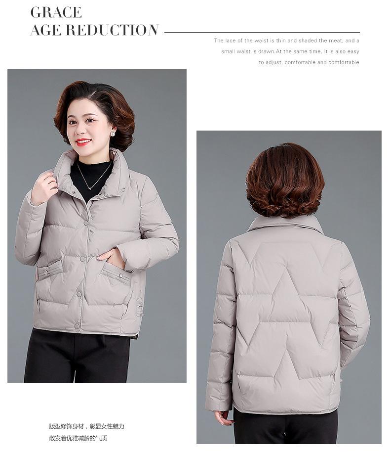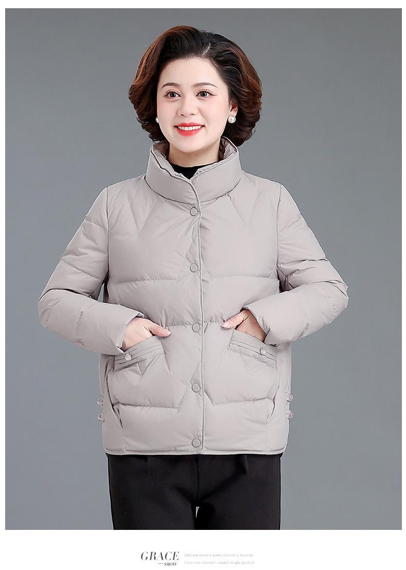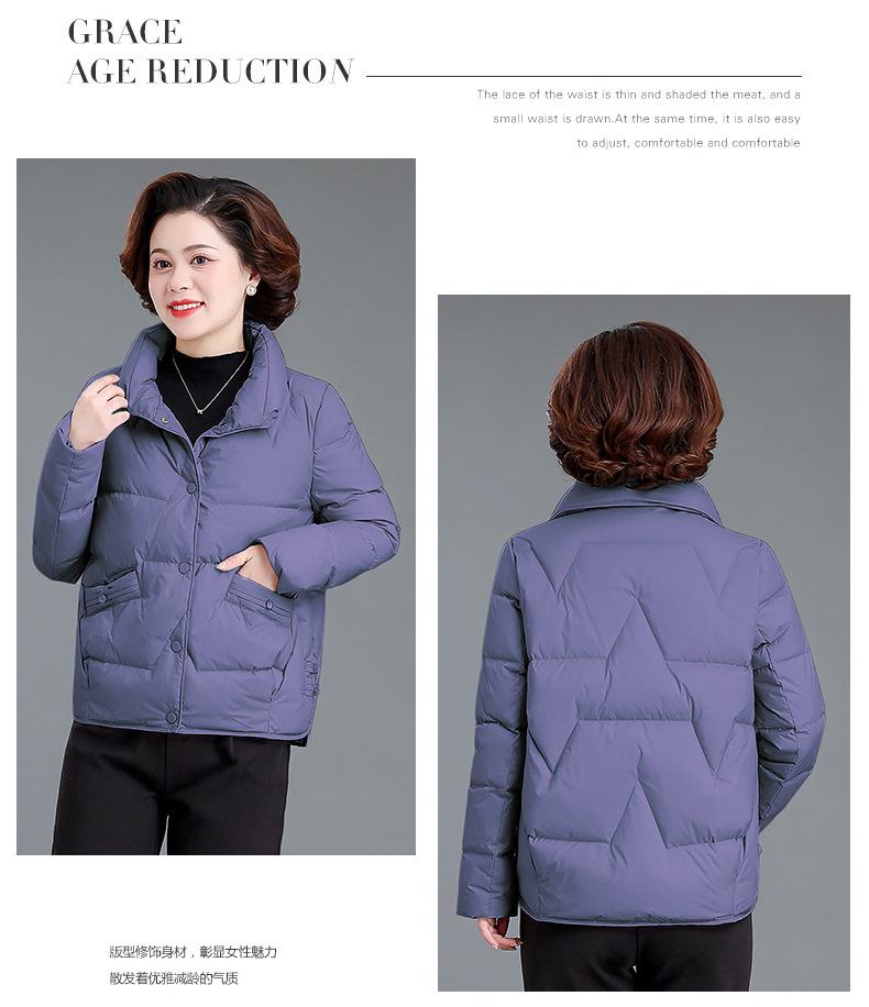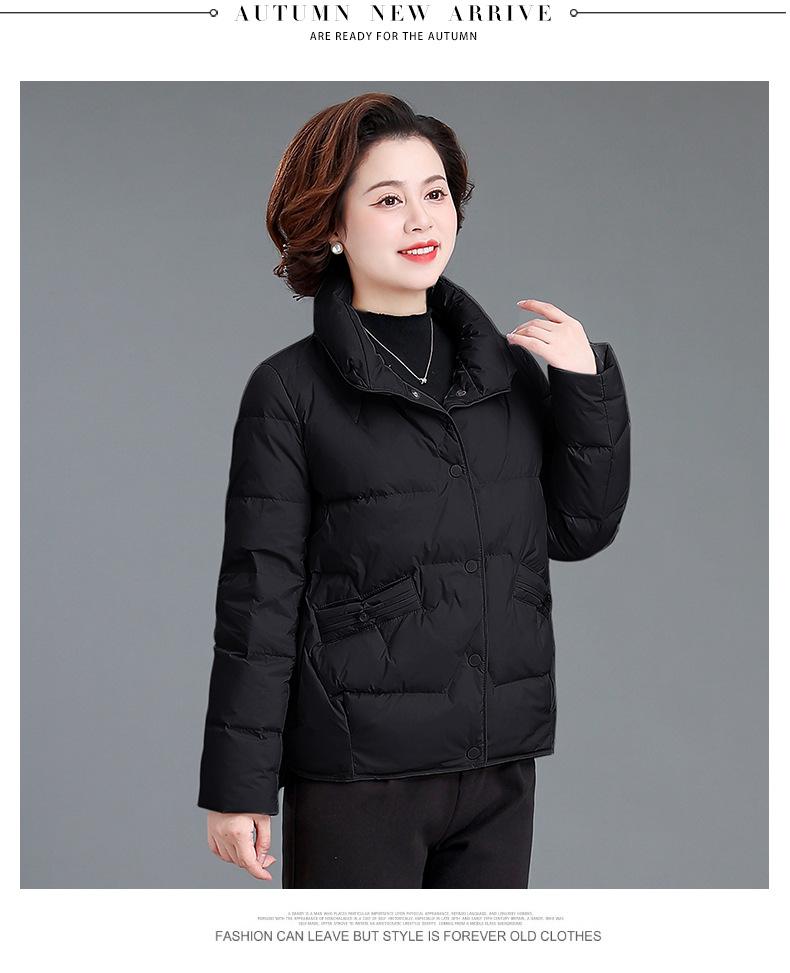 Abrigo de invierno para mamá de mediana edad, chaqueta de plumón corta 2023 nueva pequeña otoño e invierno, abrigo acolchado de algodón para personas de mediana edad y ancianas, estilo occidental para mujer