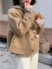 Abrigo de cachemira doble faz color camello para mujer otoño e invierno 2023 nuevo abrigo de lana con capucha de longitud media