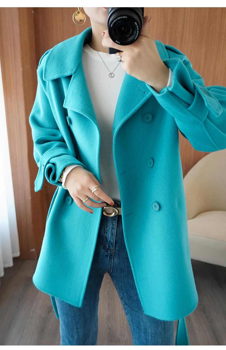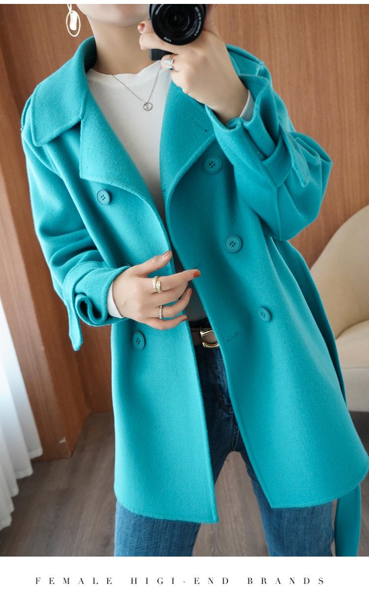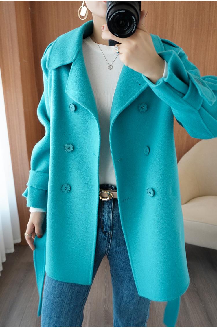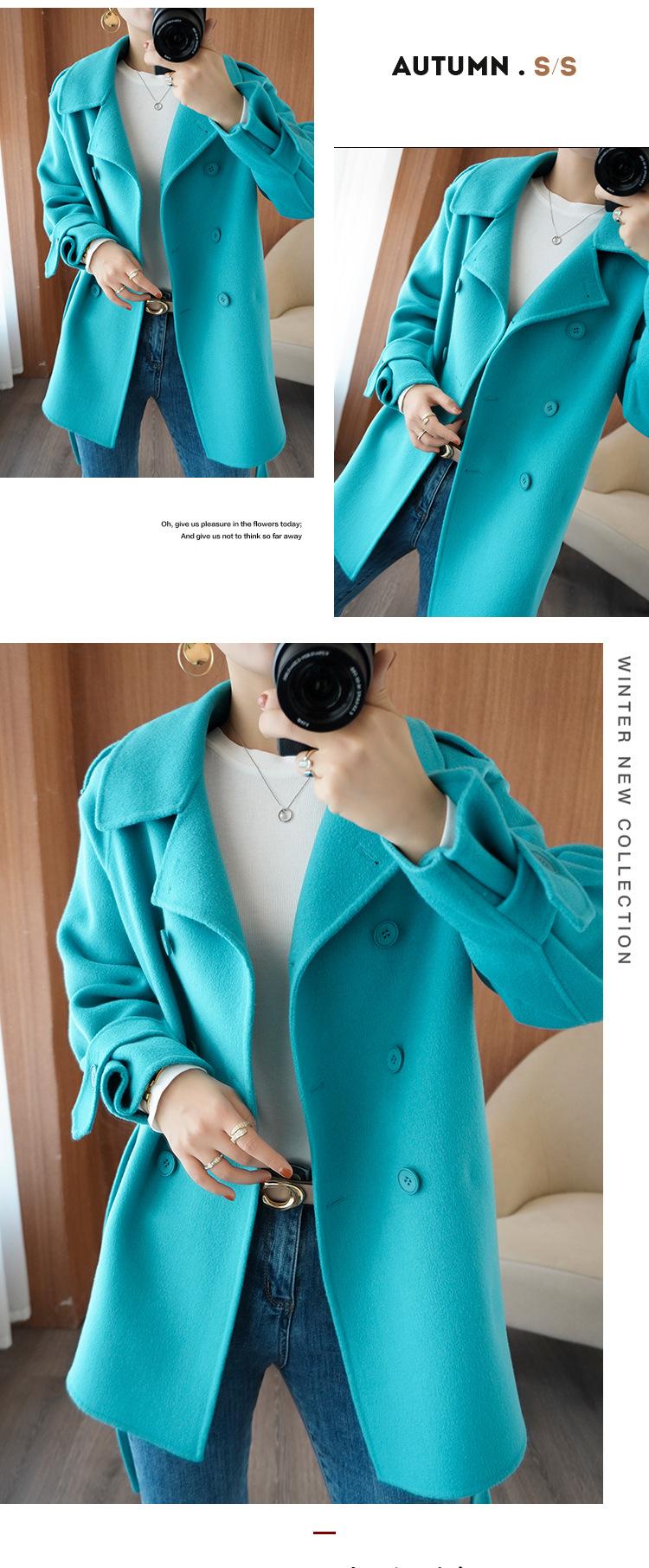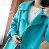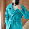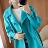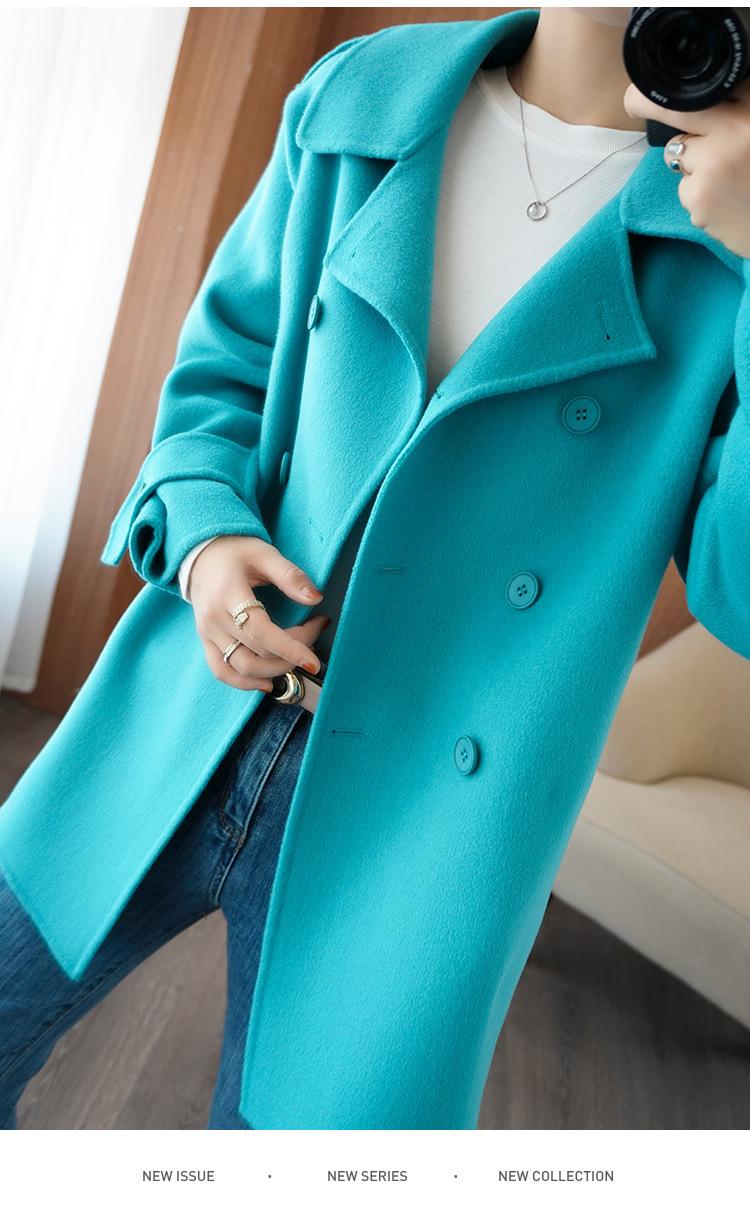 Abrigo de cachemira azul de doble cara para mujer 2023 otoño e invierno nuevo pequeño de largo medio lana lanuda abrigo suelto