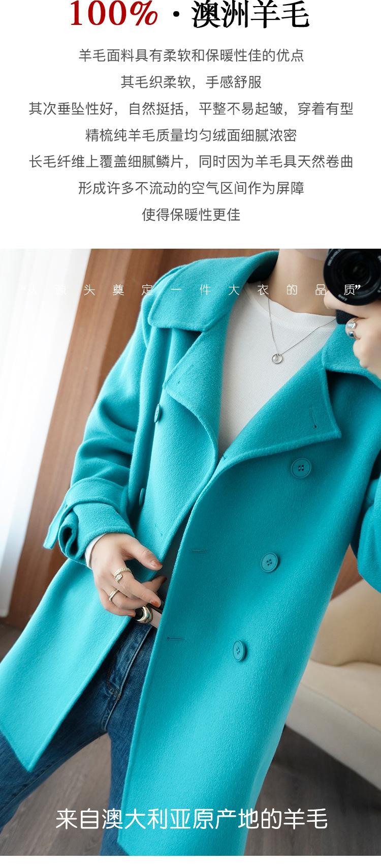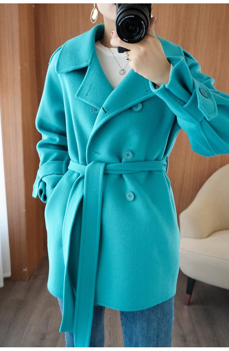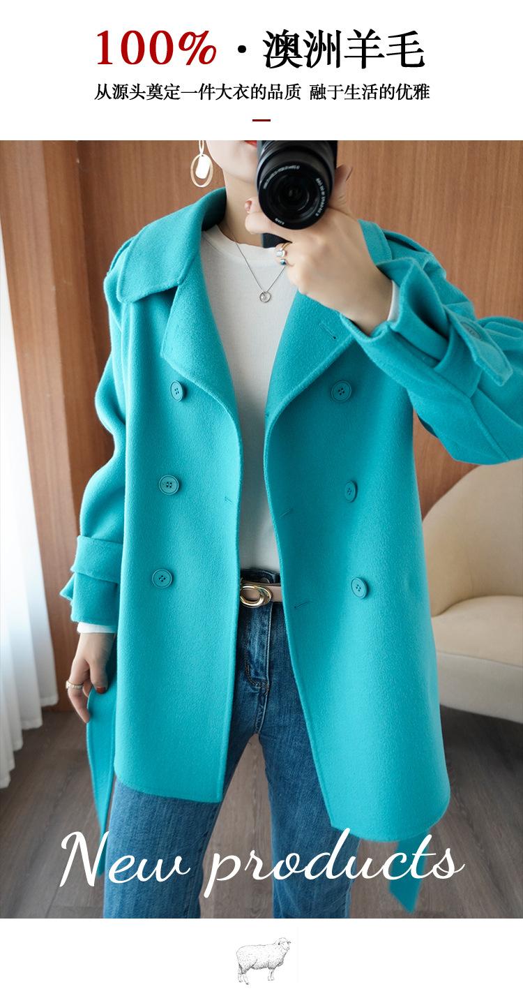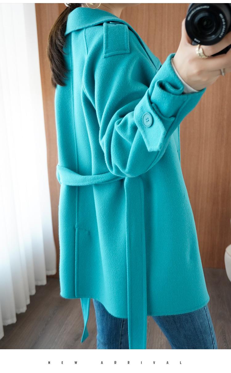 Abrigo de cachemira azul de doble cara para mujer 2023 otoño e invierno nuevo pequeño de largo medio lana lanuda abrigo suelto