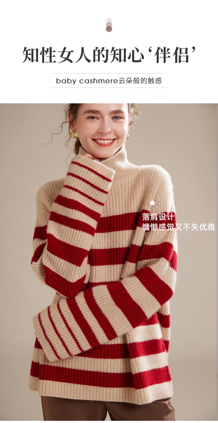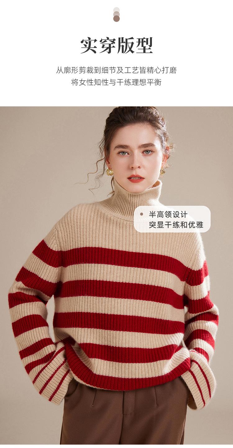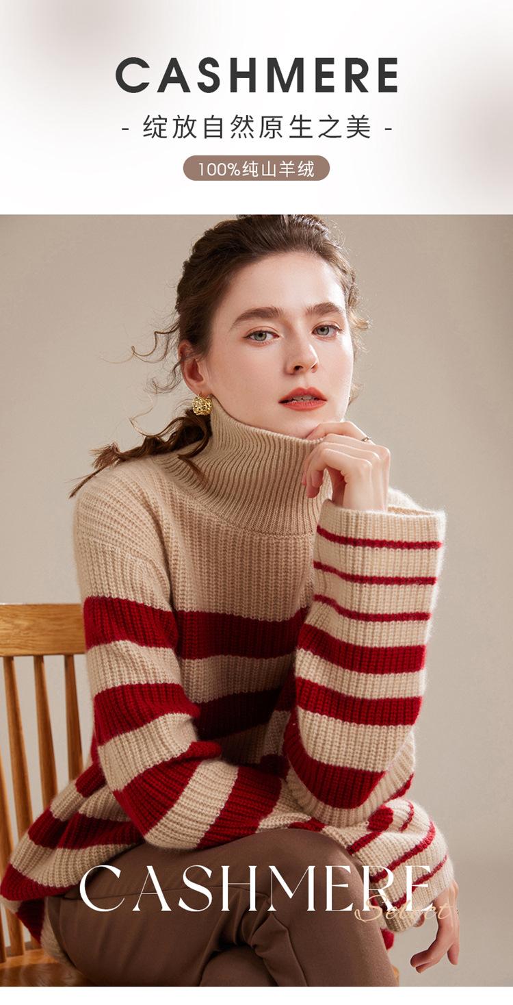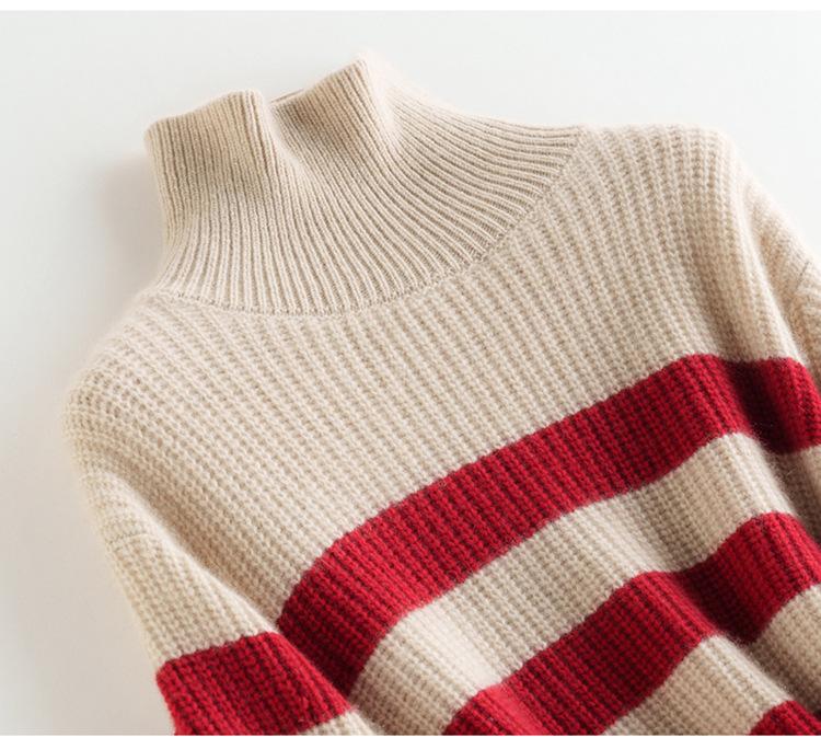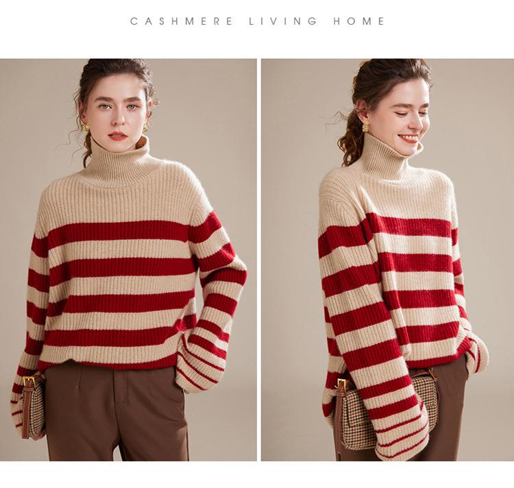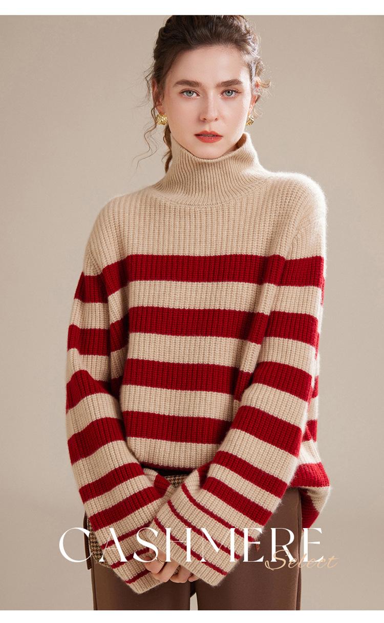2023 otoño e invierno nuevo cuello alto de mujer cachemira pura cinco agujas grueso retro a rayas suéter de cachemira tejido holgado