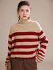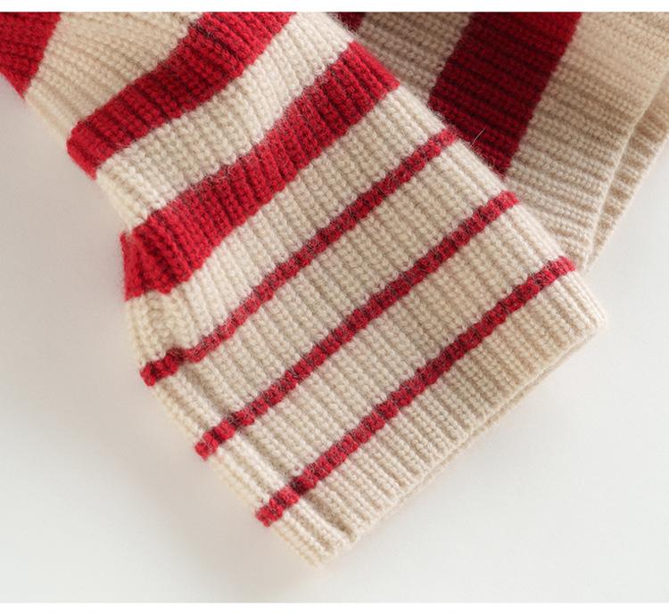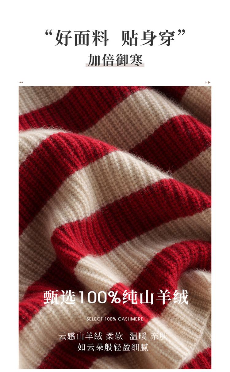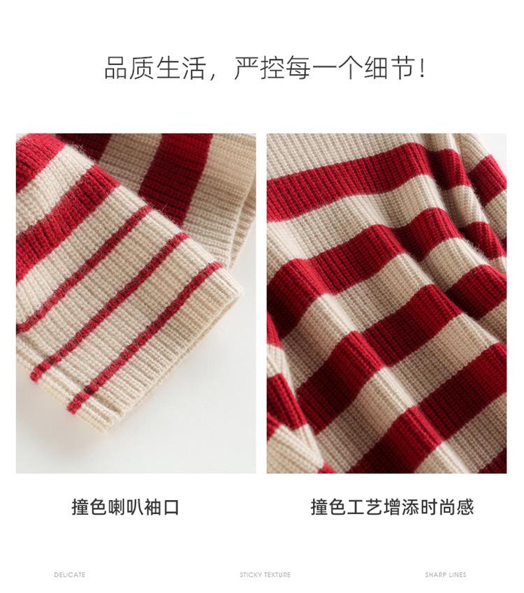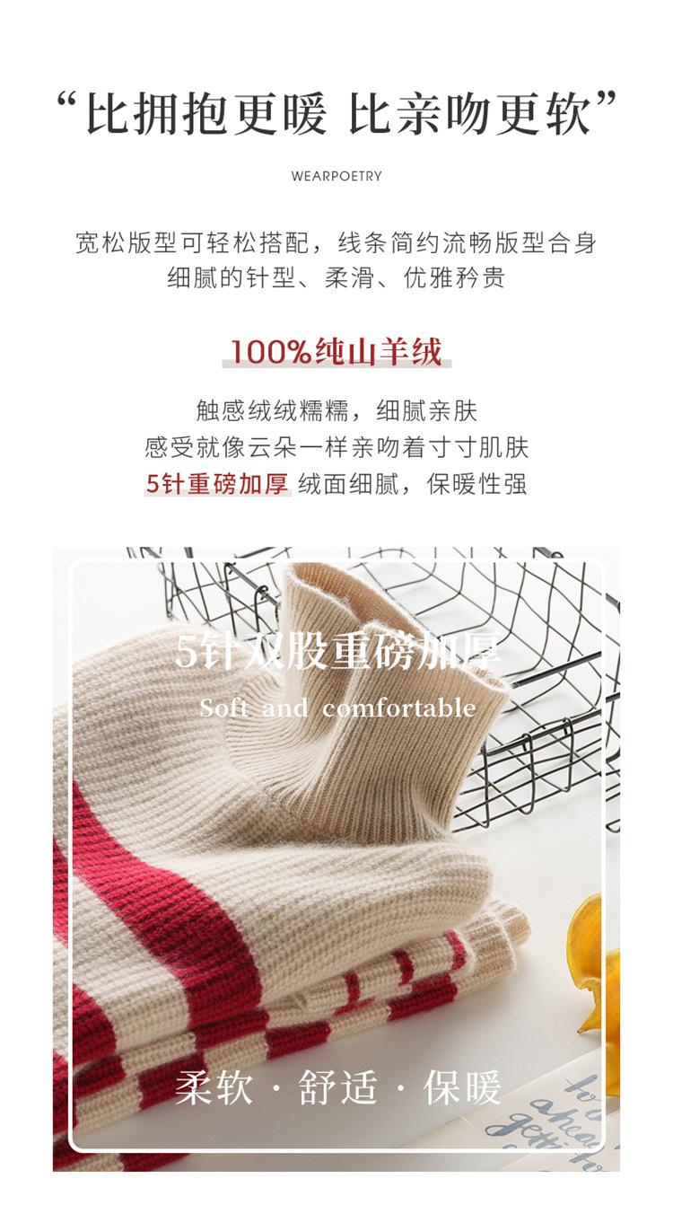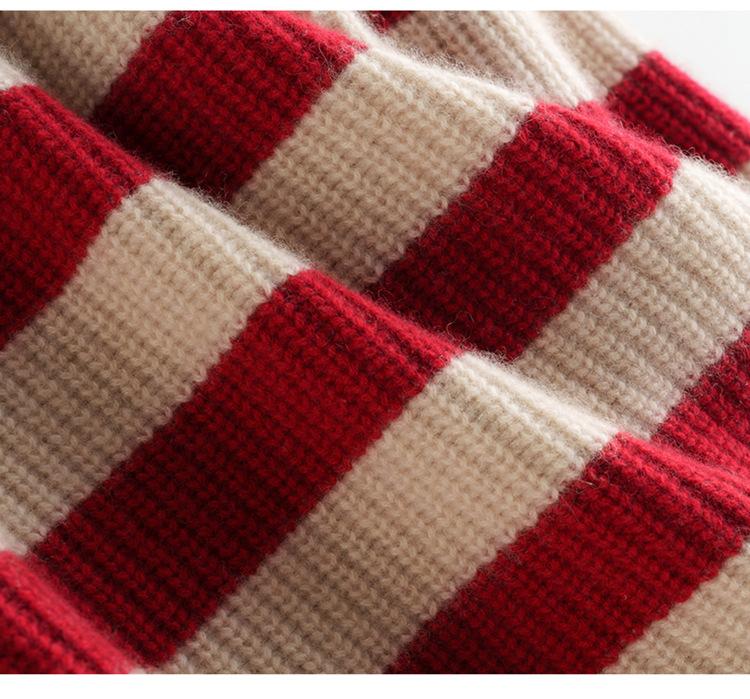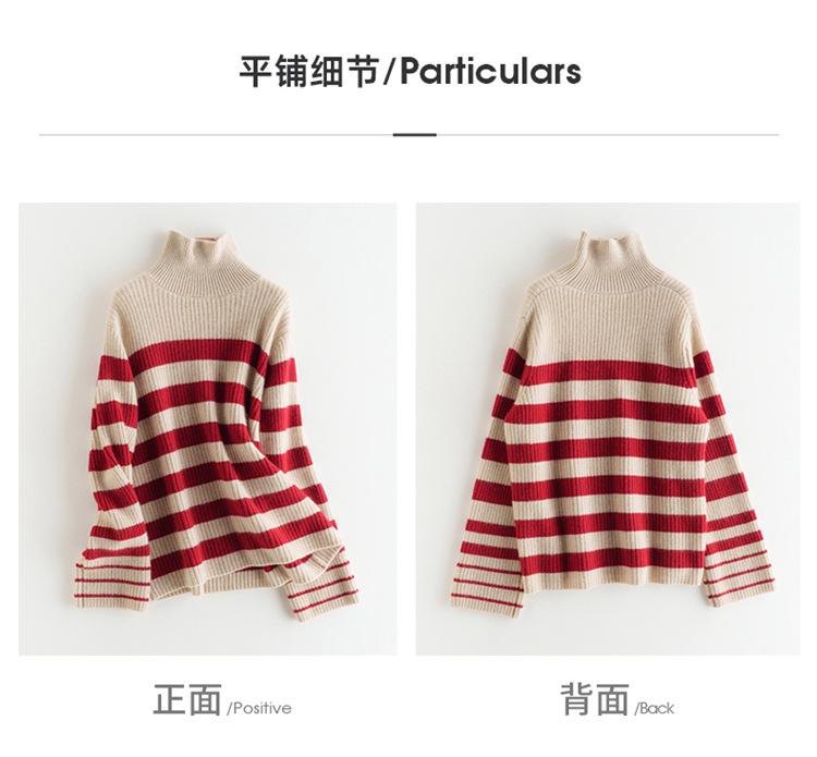 2023 otoño e invierno nuevo cuello alto de mujer cachemira pura cinco agujas grueso retro a rayas suéter de cachemira tejido holgado