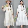Vestido de Algodón Seda Estilo Étnico Yunnan Viaje Vacaciones Junto al Mar Falda de Playa Falda Larga Estampada Bohemio