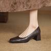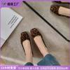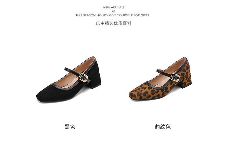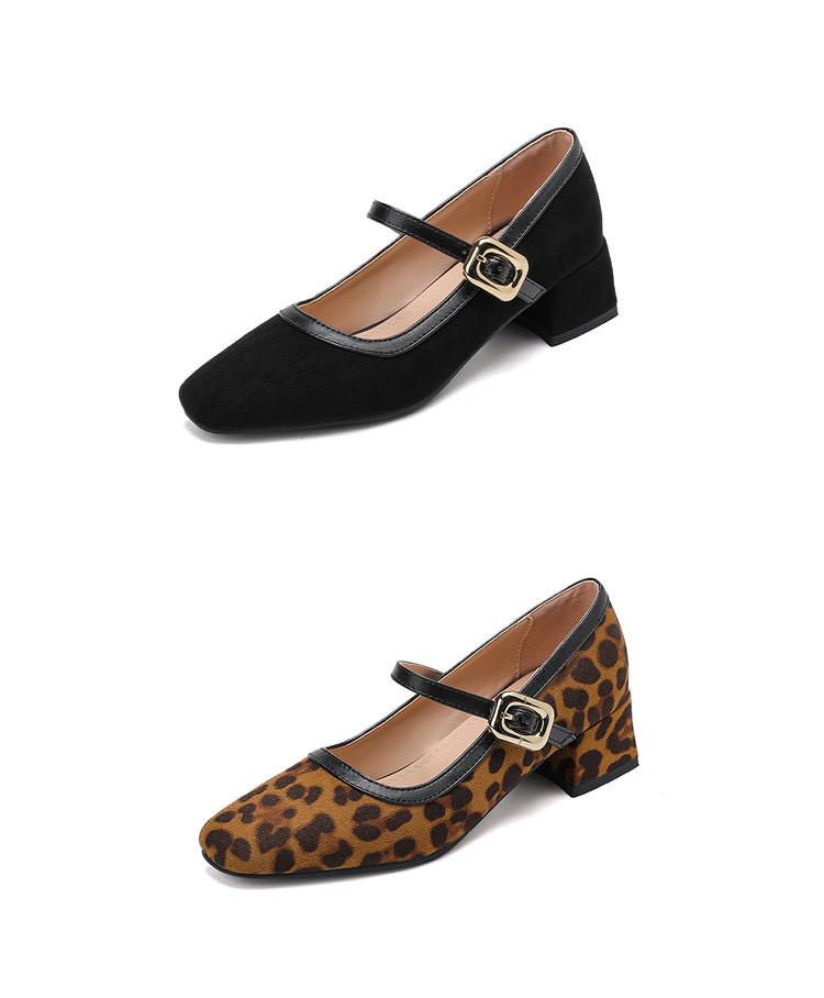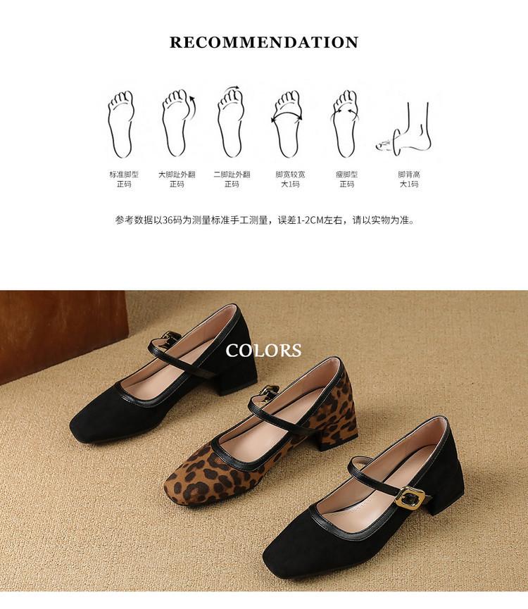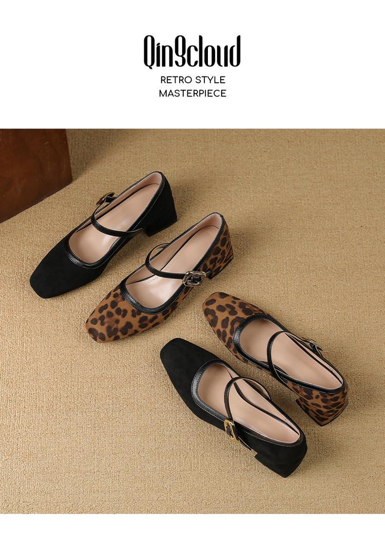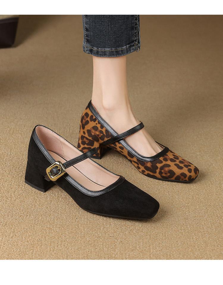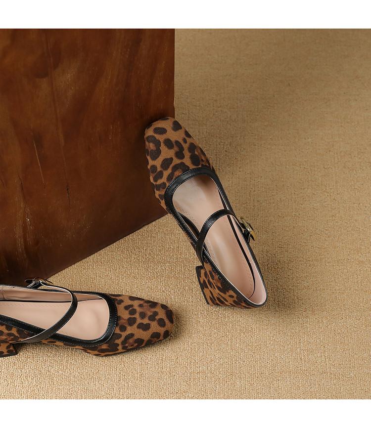 Zapatos de Cuero Pequeños para Mujer con Punta Redonda y Tacón Medio Estampado de Leopardo Zapatos de Moda para Mujer Suela de Goma Suave Slip-On Casual Tacón Cuadrado