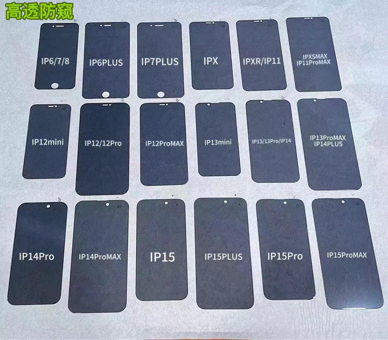 Half screen privacy film (thick black) bare film, Full-screen high-transparency privacy film (bare film), Priv...