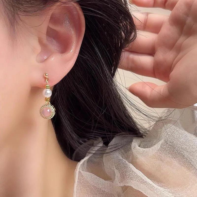 Aretes Perla Rosa Bosque Aretes Nuevo Estilo 2025 Aretes Nicho Lujo Estilo Ins