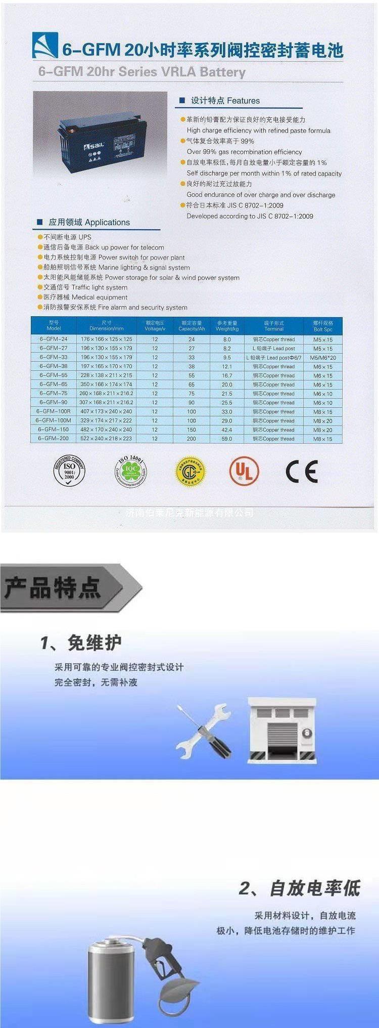 Batería Sail 6-Gfm-200 12V200Ah Fuente de Alimentación UPS Solar Fotovoltaica Producto Compatible con Pantalla DC