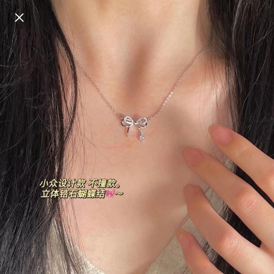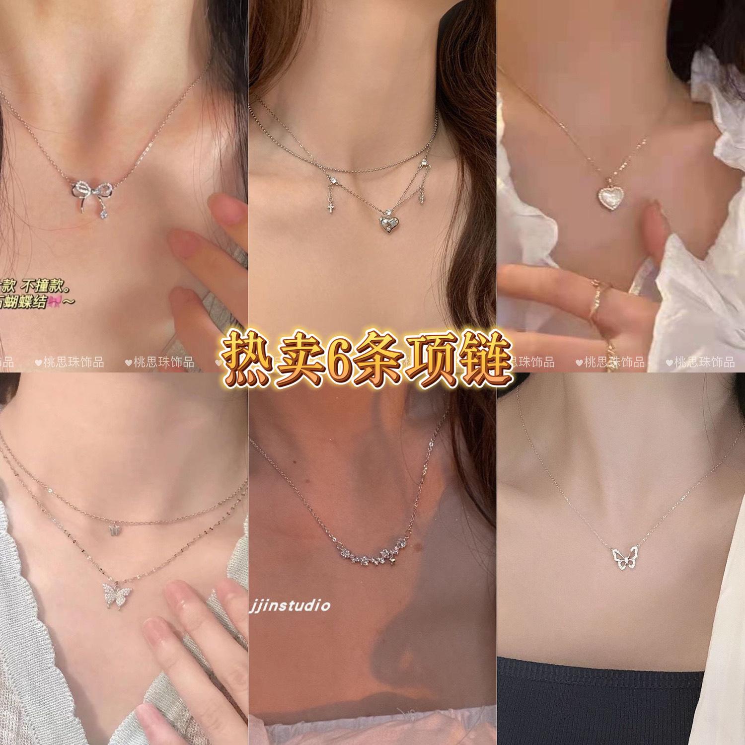 L106 cat eye love necklace, ML-38 zircon floret necklace, ML-75 Bow Drop Diamond Necklace, A86 double layer butterfly necklace