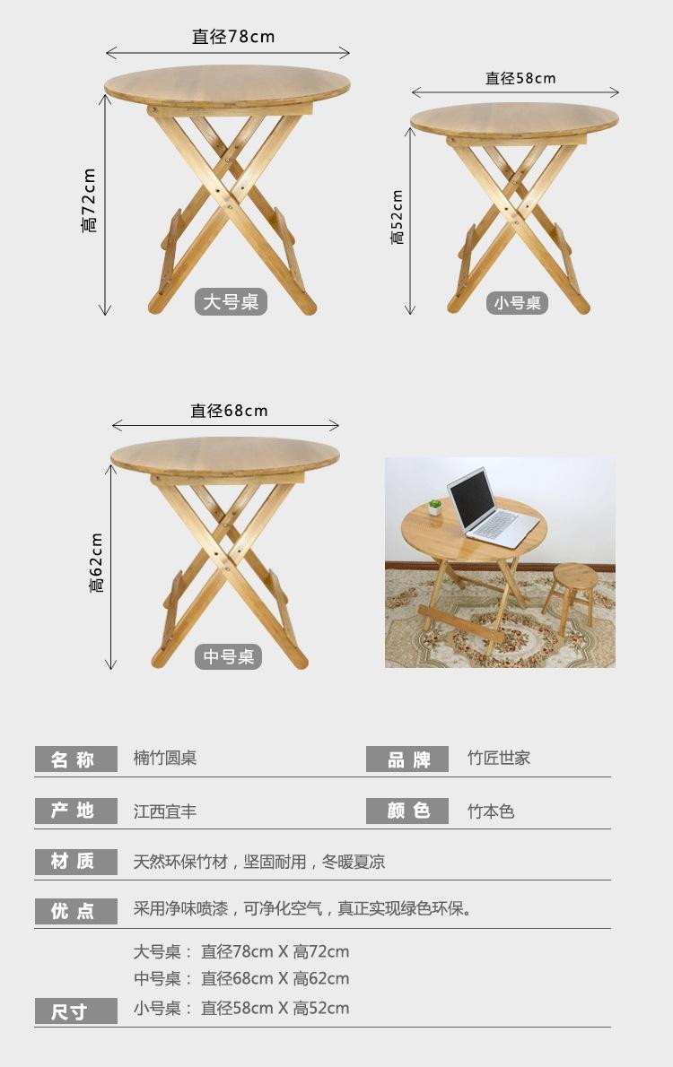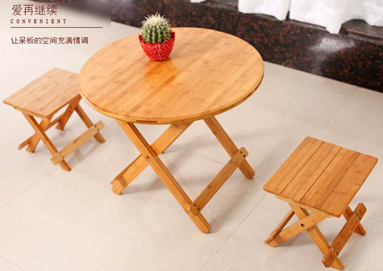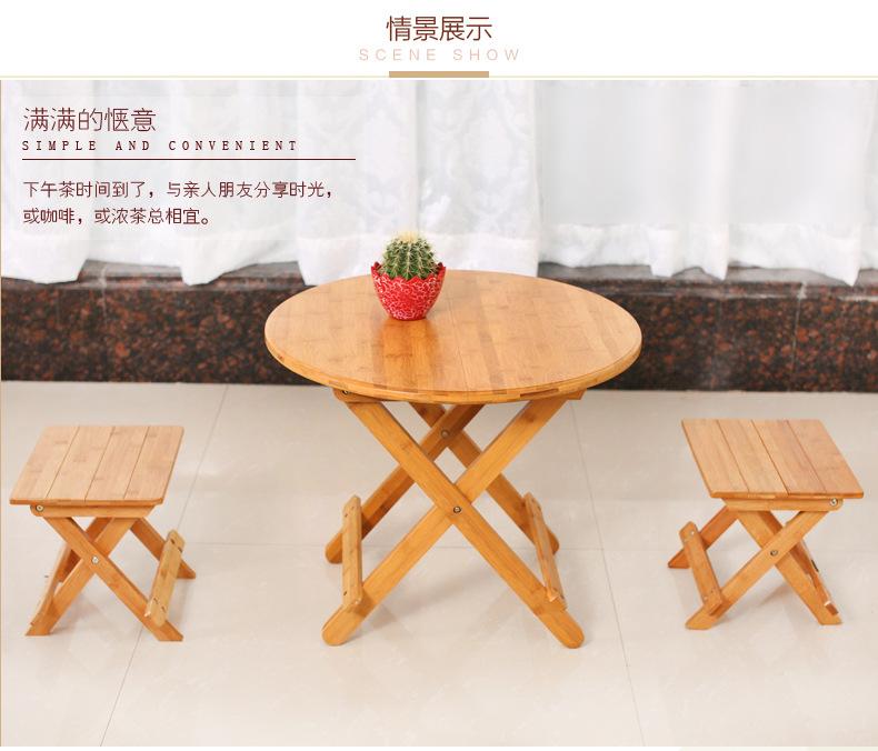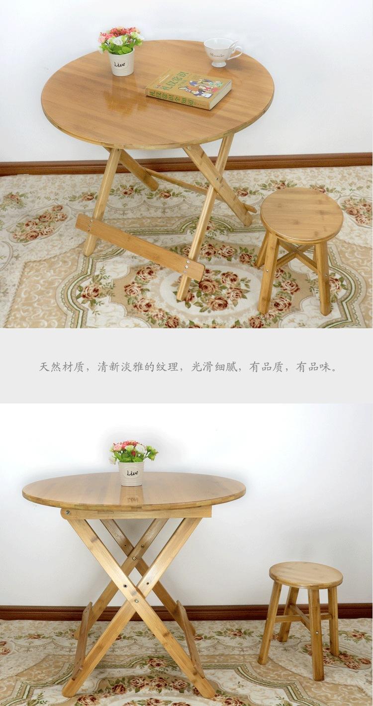 Mesa Redonda Plegable de Bambú Mesa de Comedor Pequeña Sencilla 2 Mesa Redonda Portátil Mesa de Madera Maciza para 4 Hogar Mesa Plegable