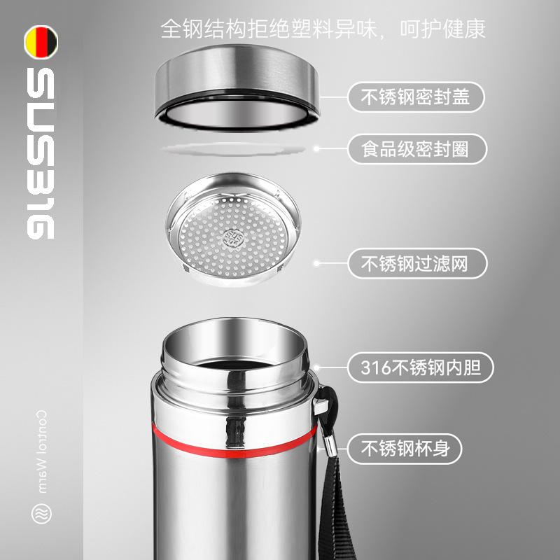 Taza Termo de Acero Inoxidable 316 para Coche para Hombres y Mujeres Grado Alimenticio Gran Capacidad Separación de Té y Agua Taza de Té 304 para Exterior
