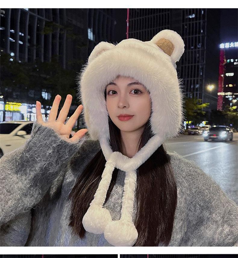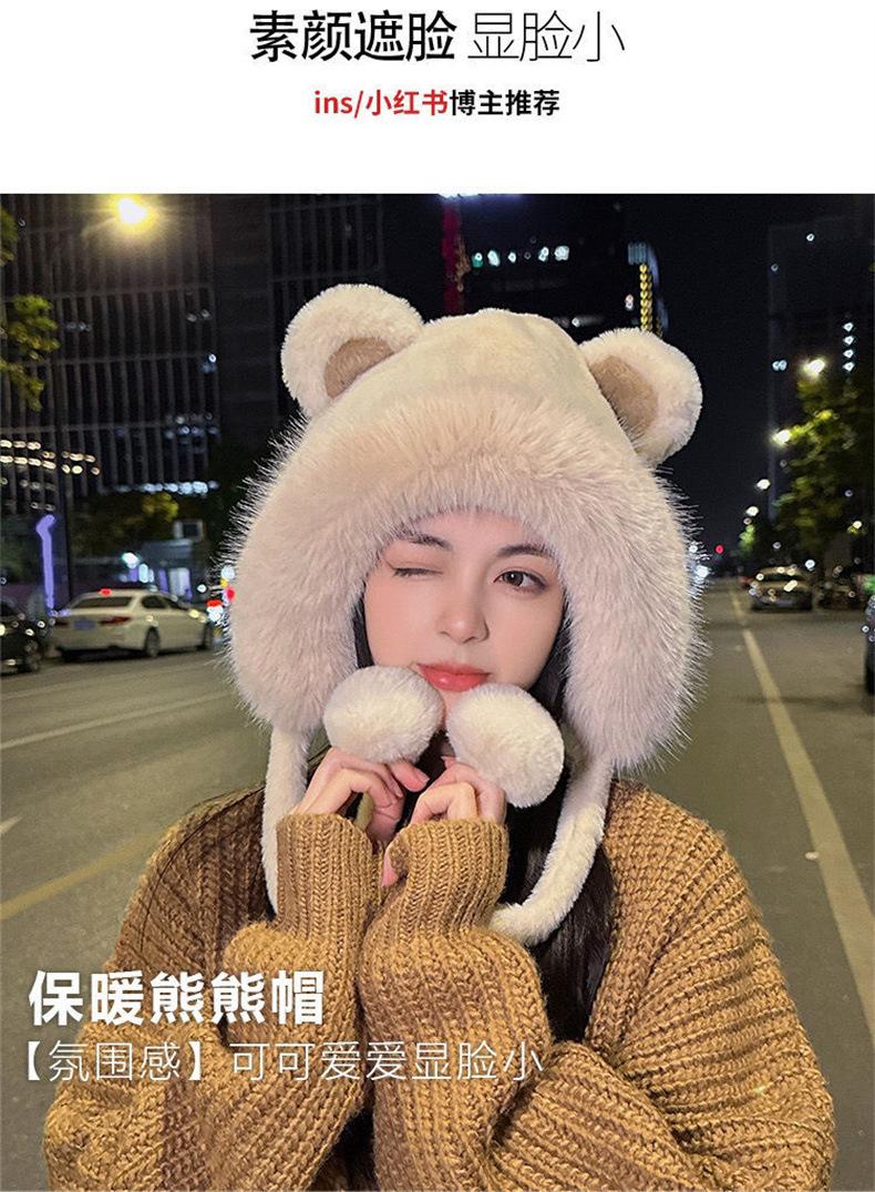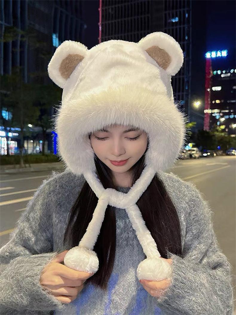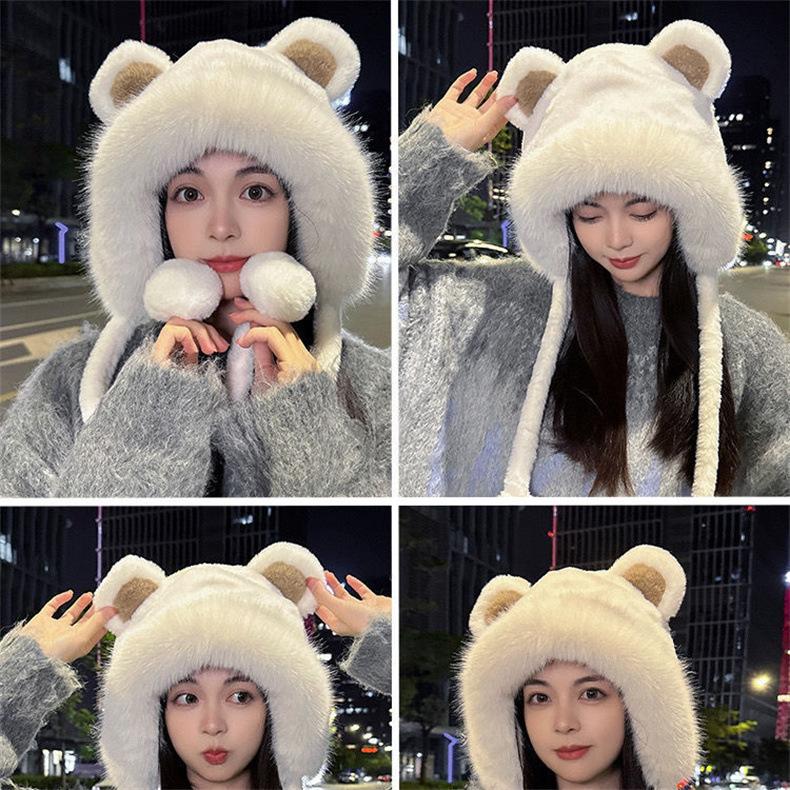 Lindo Gorro Peludo con Orejas de Oso para Mujer, Invierno Estilo Japonés Protección para las Orejas Grueso Cálido Sombrero Lei Feng