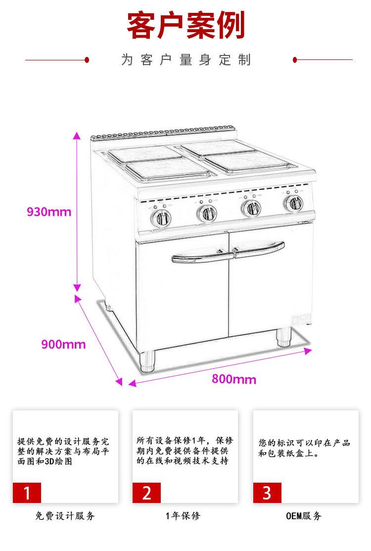 Estufa de Cocina Comercial Vertical de Cuatro Cabezales Bochang con Base de Gabinete Hotel Restaurante Estufa de Cocina Eléctrica de Seis Cabezales con Horno