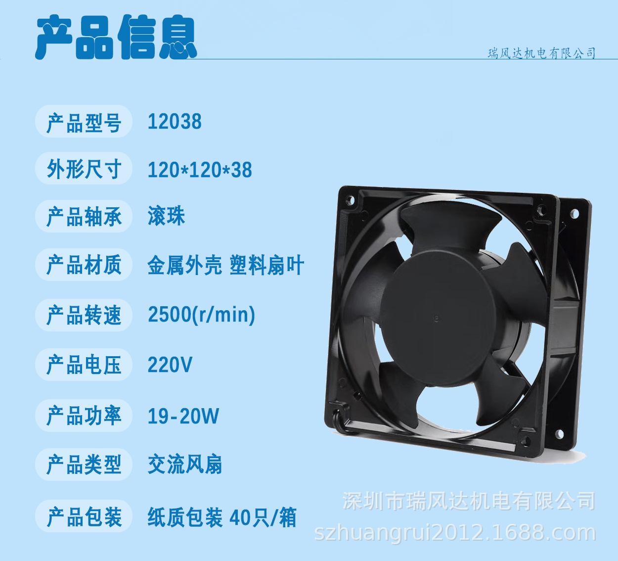 Ventas Directas de Fábrica 12038 Ventilador de Refrigeración 220V Rodamiento de Bolas Núcleo de Cobre 12cm Chasis Gabinete Ventilador Industrial