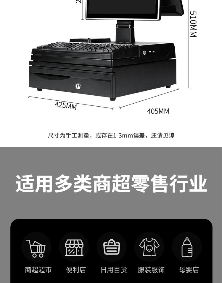 Suministro Directo de Fábrica Junrong C559P Supermercado Tienda de Conveniencia Pos Equipo Sistema Caja Registradora Máquina Todo en Uno