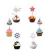 Nombre del producto:Decoración de Pastel Toppers Picks Banderas Barco Marítimo de Vela Ancla Ballena Estrella Roja Decoraciones para Cupcakes de Fiesta