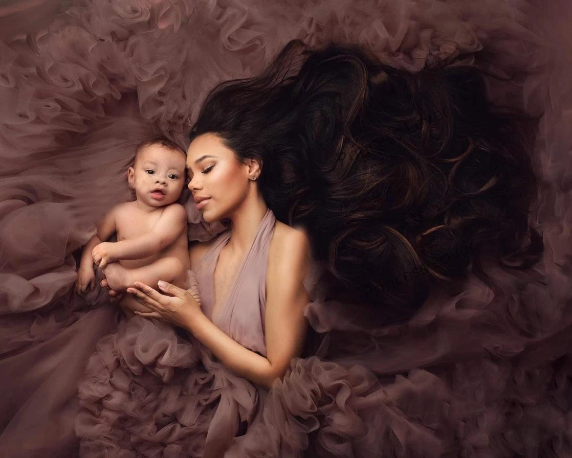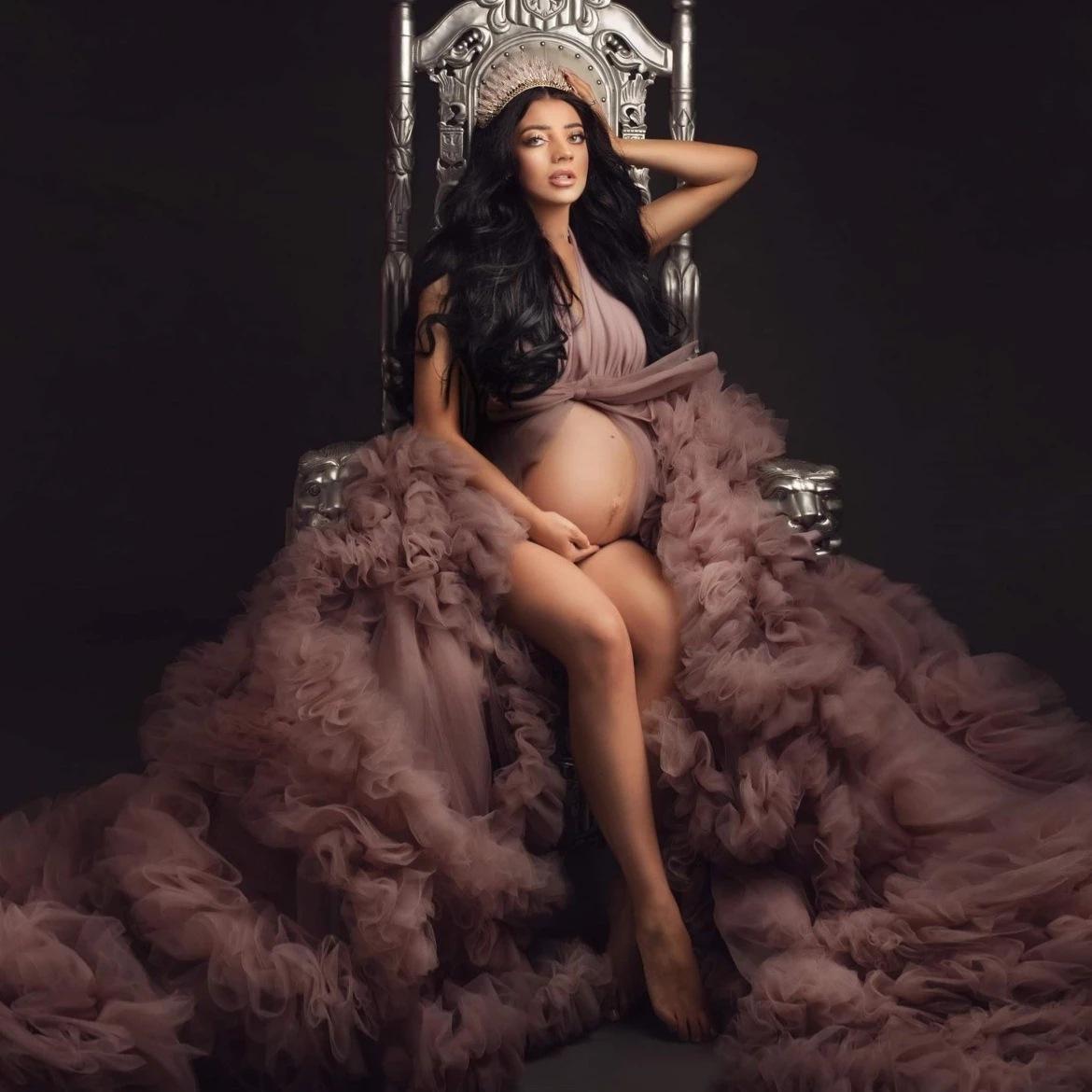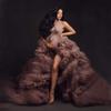 Encantador vestido de baile con volantes bohemio sin espalda para maternidad, bata para sesión de fotos, vestido de noche de venta caliente