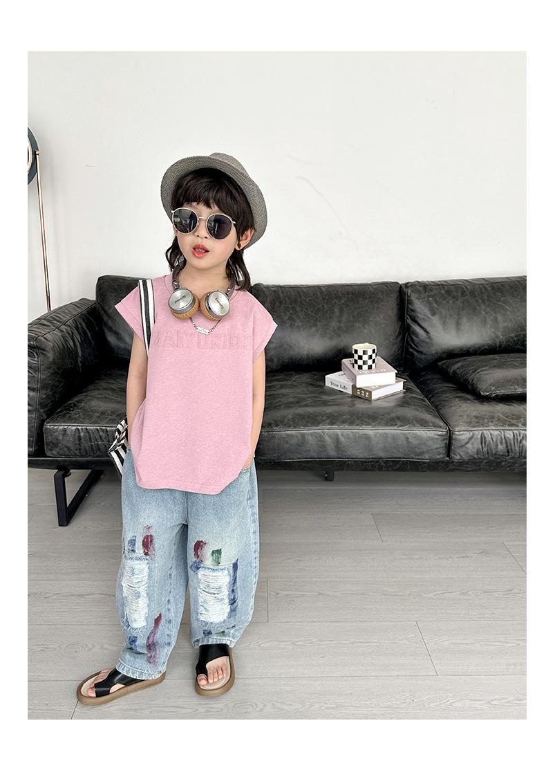 Nuevo Chaleco para Niño Camiseta sin Mangas 2025 Verano Nuevo Estilo Coreano Ropa para Niños Pequeños y Medianos Tops Estampados Estilo Occidental